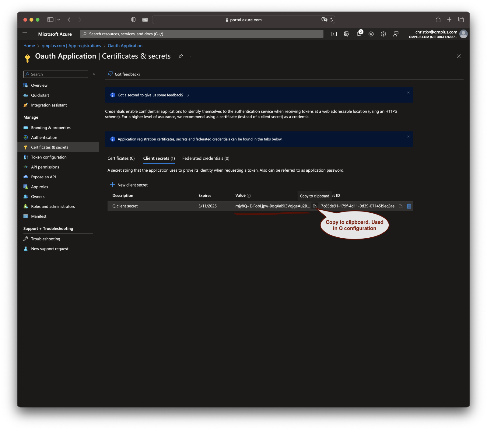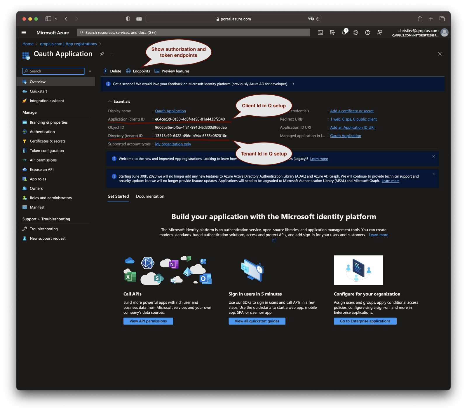 In this section we will provide a guide and references on how to set up an Azure OAuth application for Q.