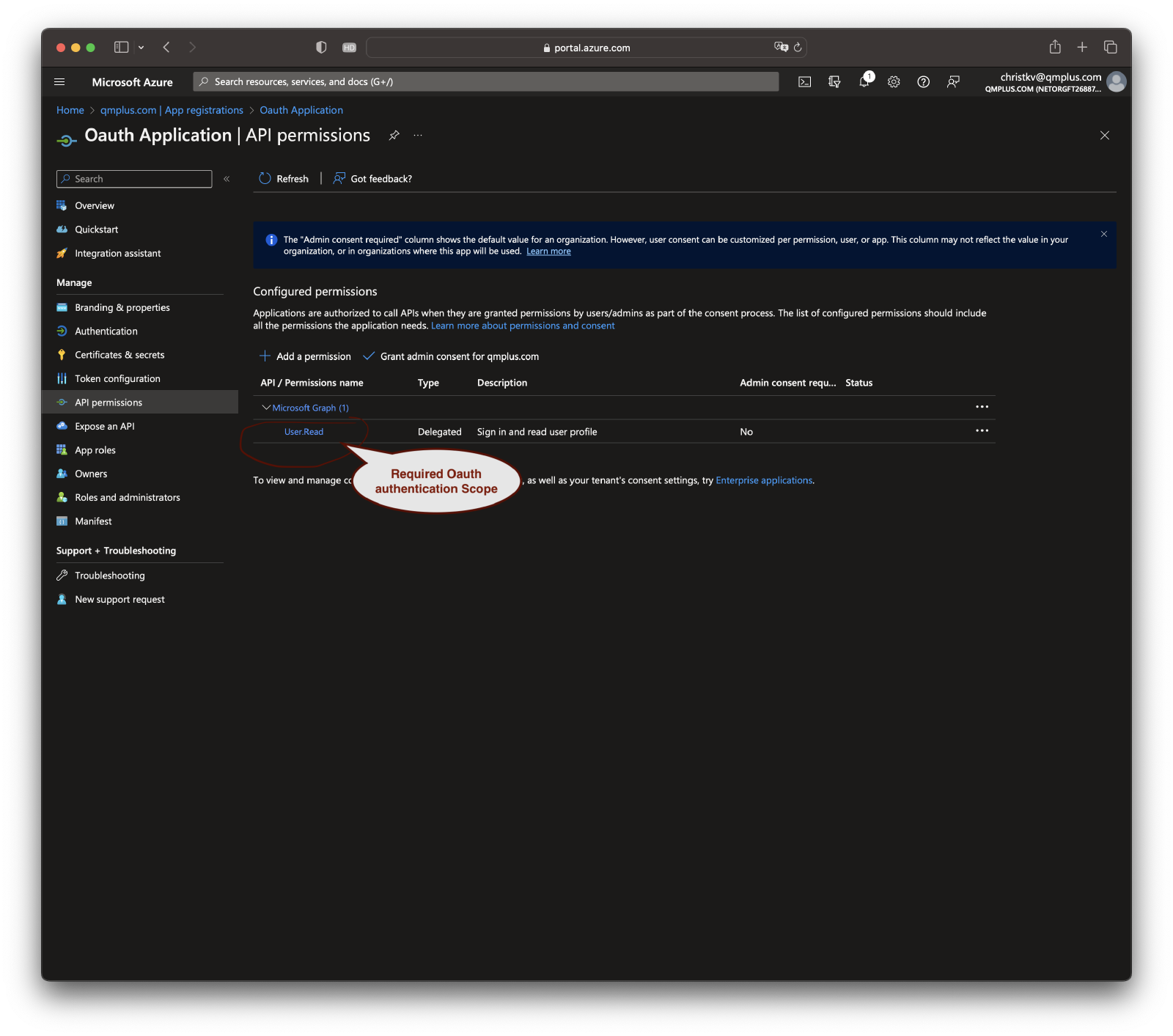 Scopesmake sure to enter the scopeUser.Readunless you have custom scopes defined which is out of scope for this tutorial.