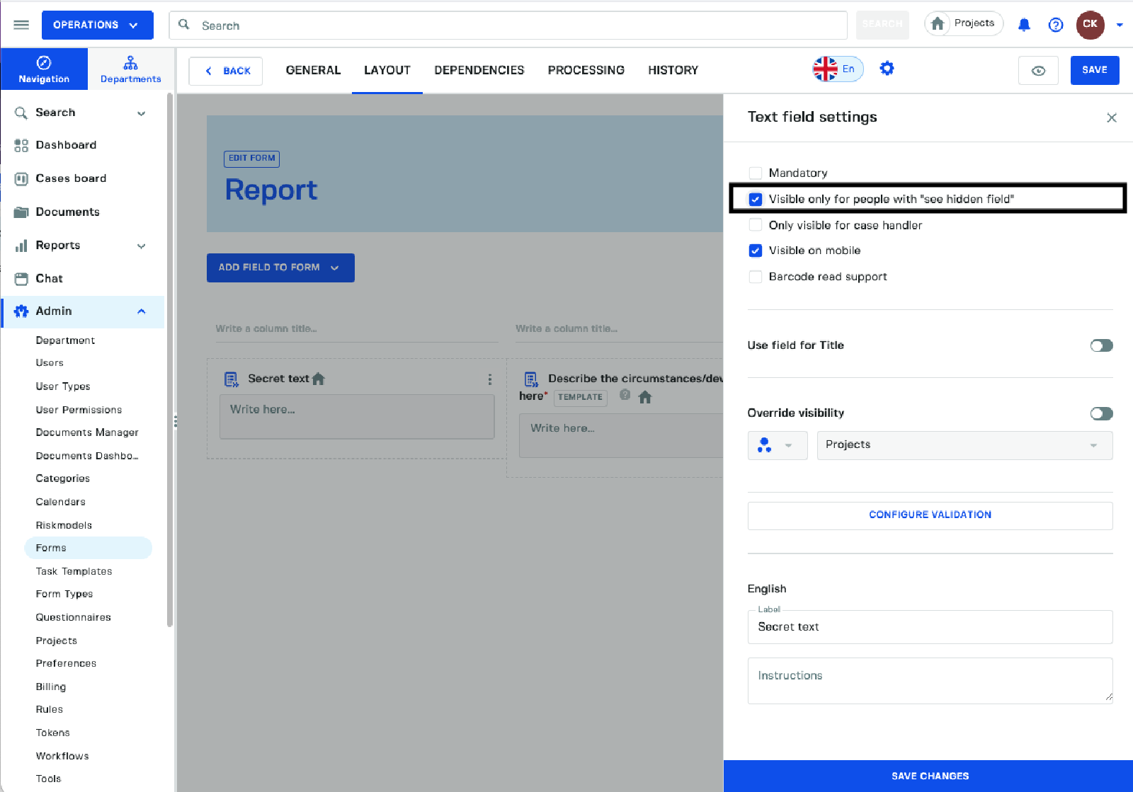 Select the option Visible only for people with see hidden field and then click on save changes to apply it to the form.