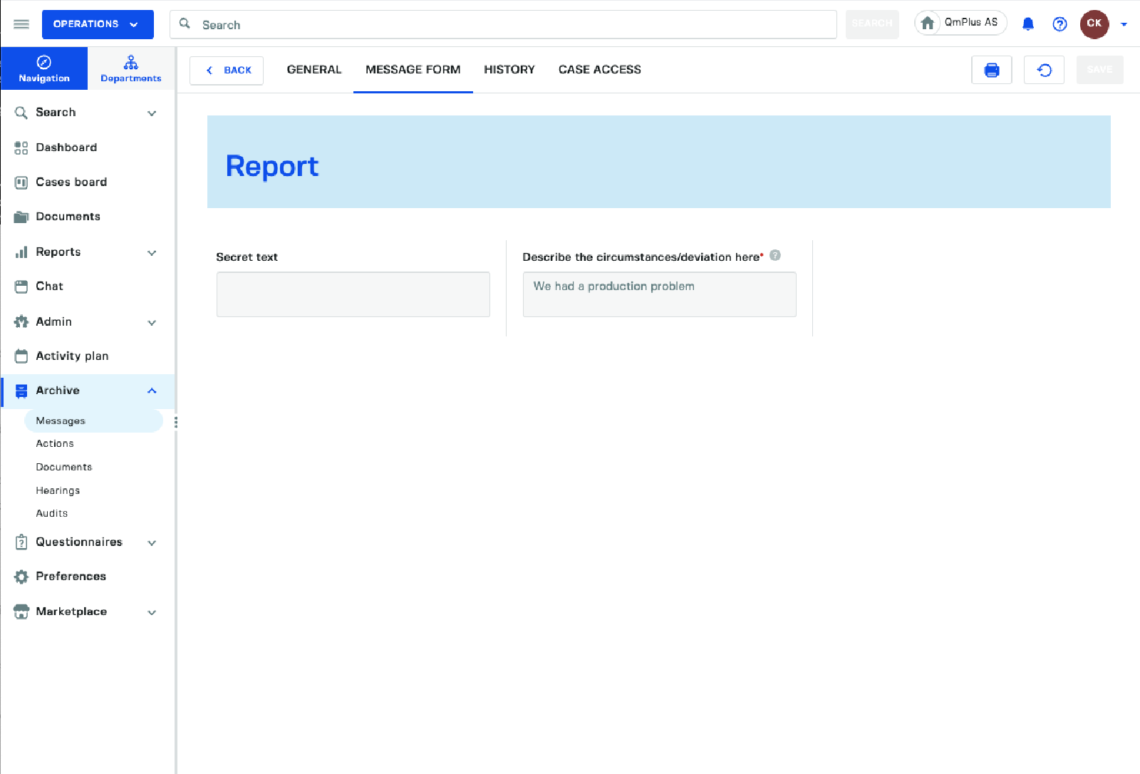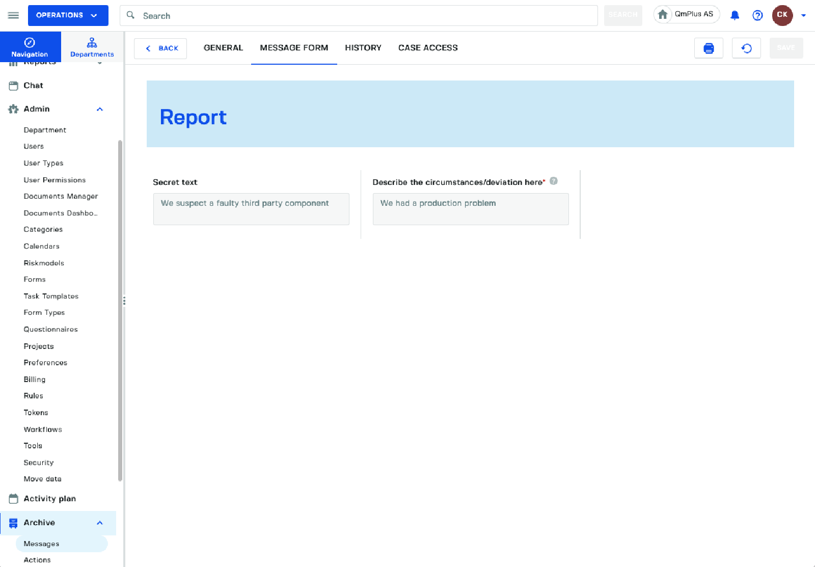 Lets see how the message looks for a case handler accessing the form who is missing the ACCESS_HIDDEN_FIELDS permission.