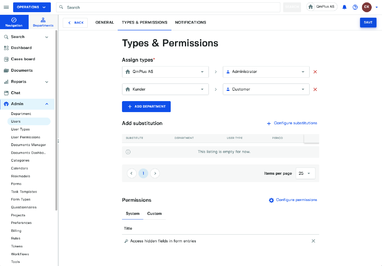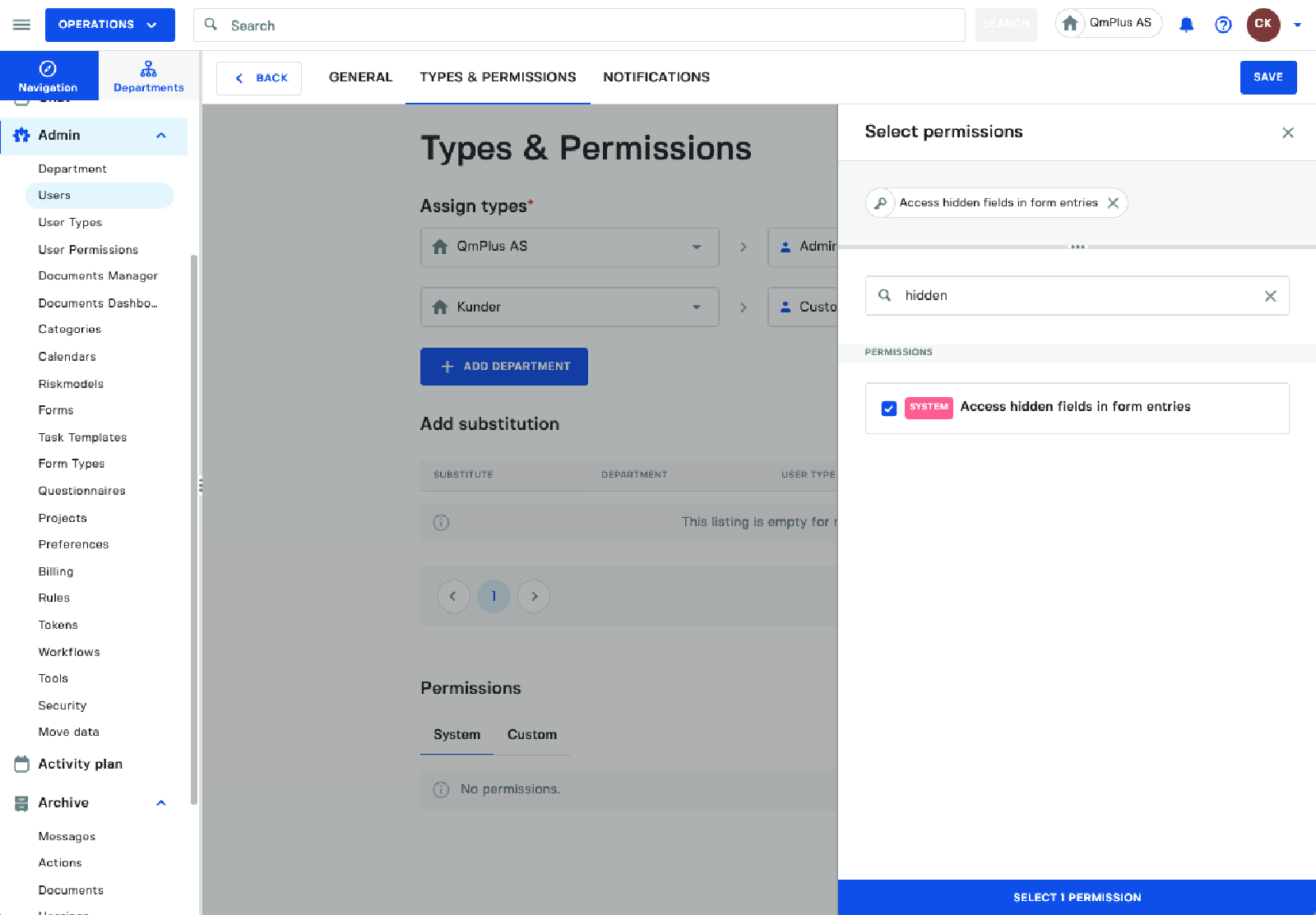 Next click Configure permissions and add the ACCESS_HIDDEN_FIELDS permission to the user.