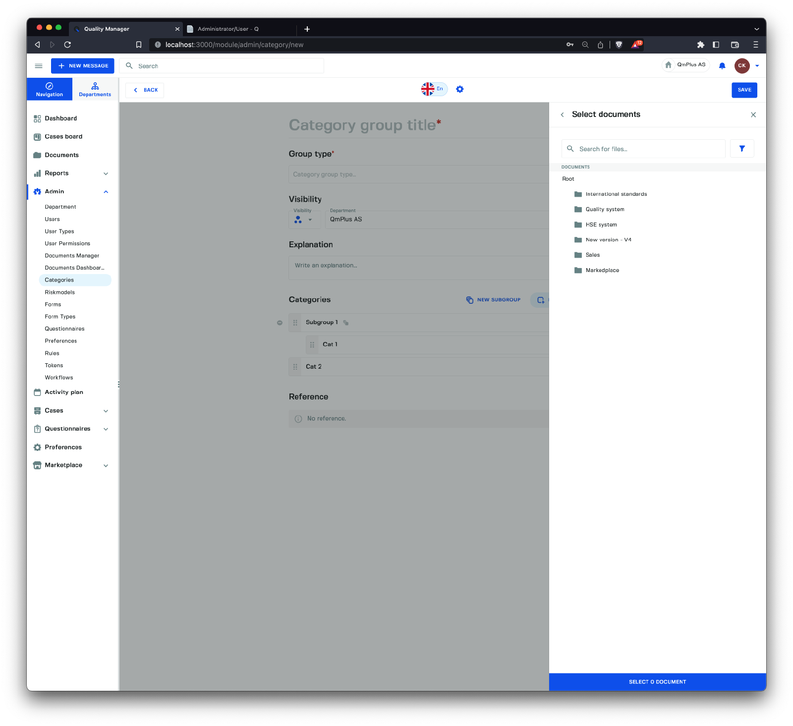 Lastly, you can select a reference document that you want to include as a reference in the category group.