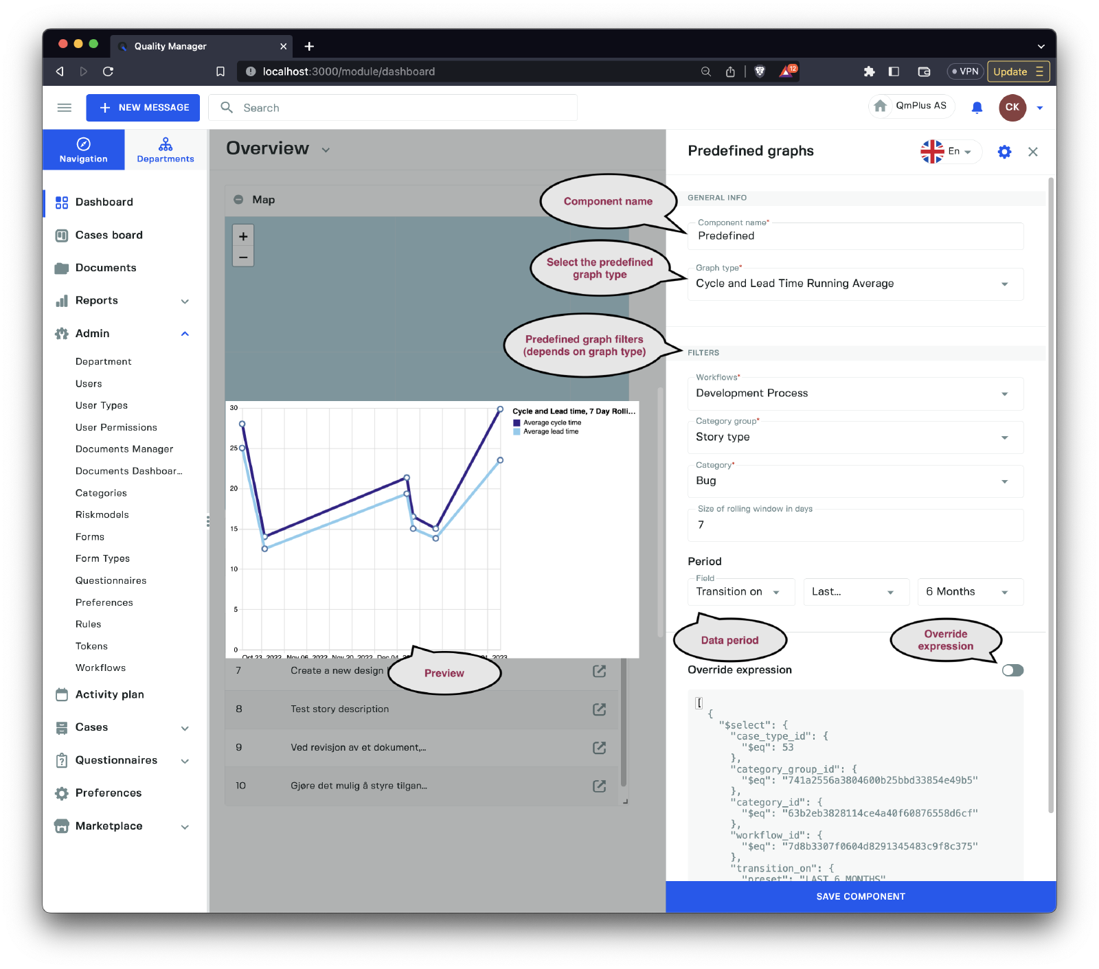 Filters | A set of filters that will vary depending on the predefined graph type the user selects. |