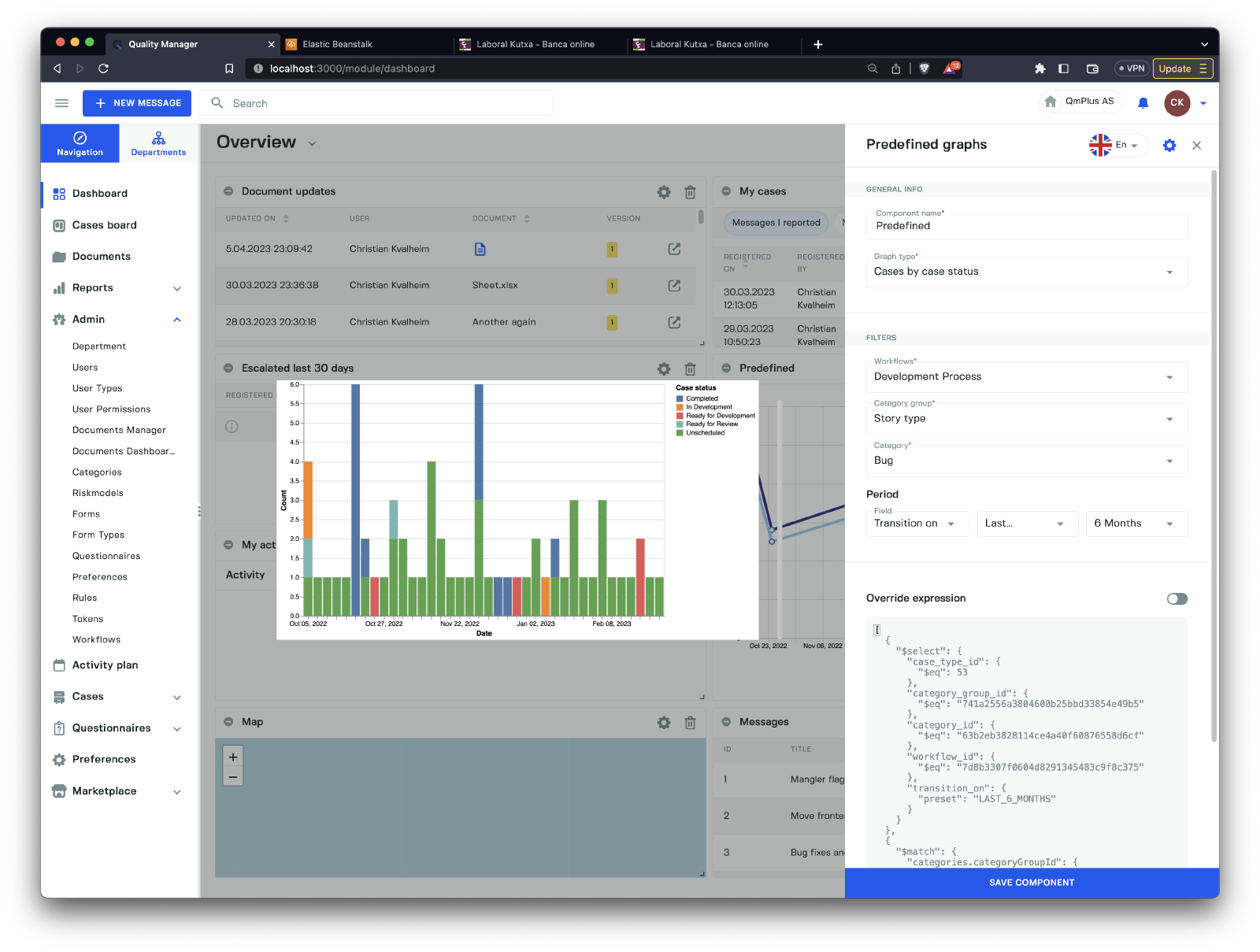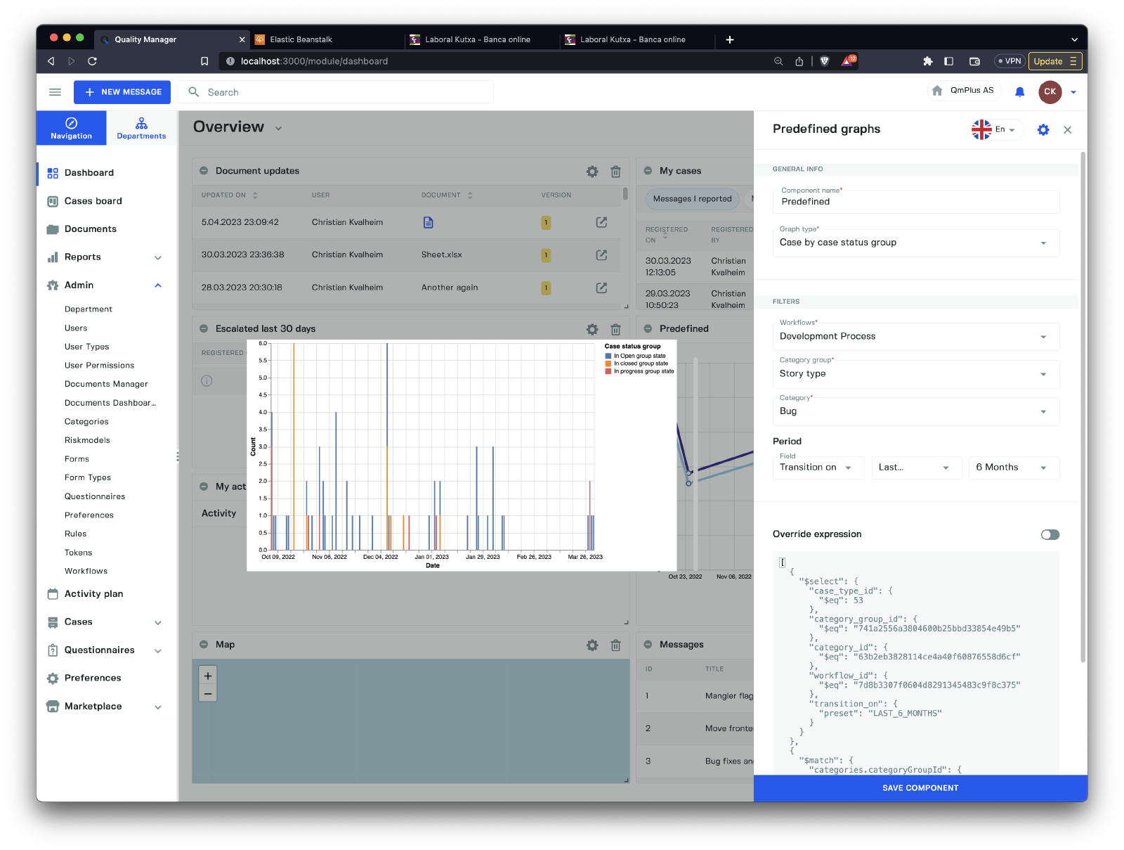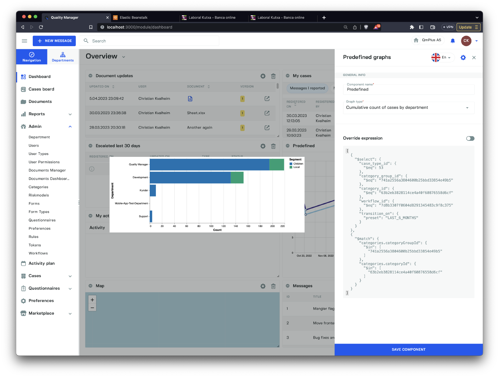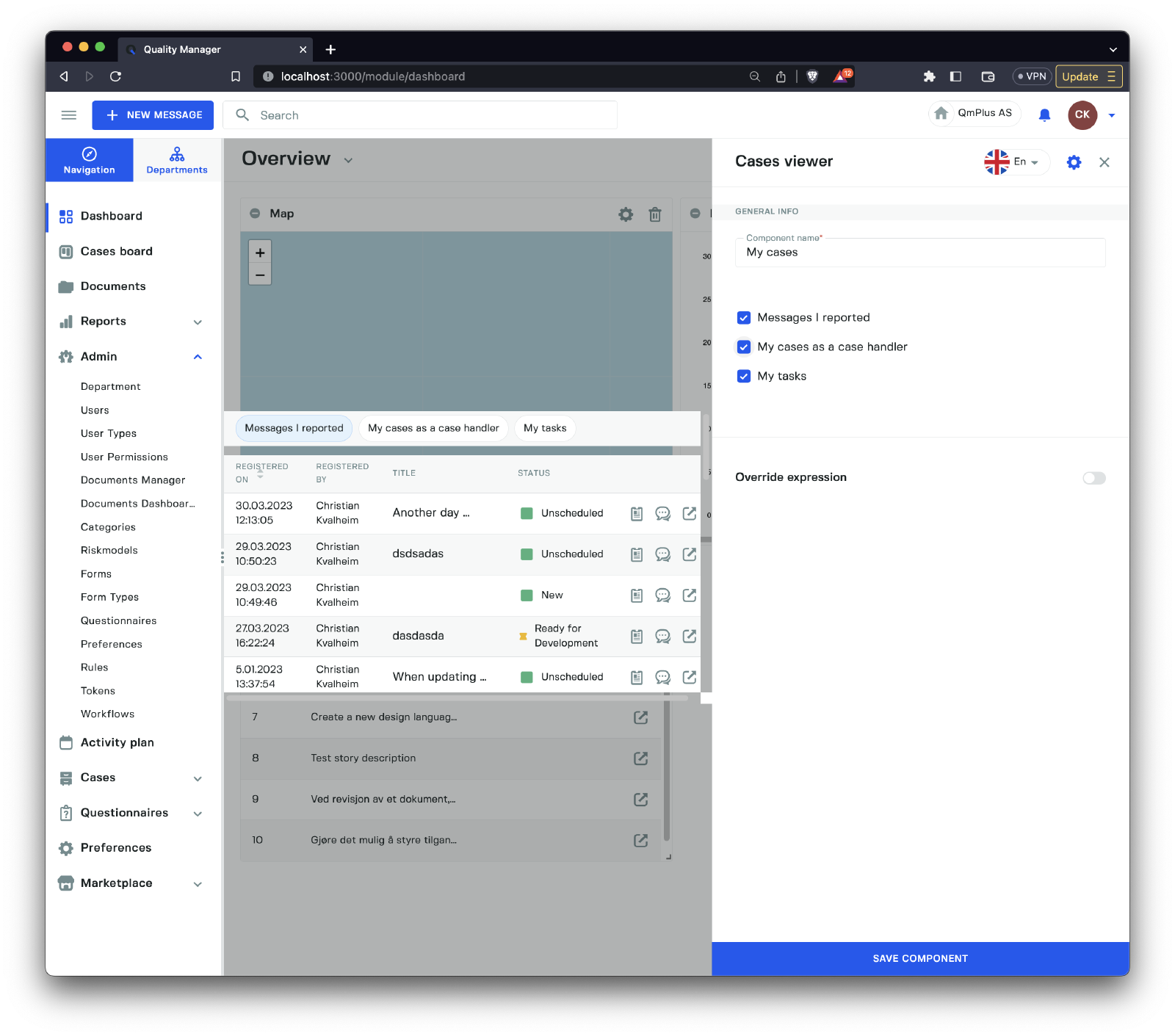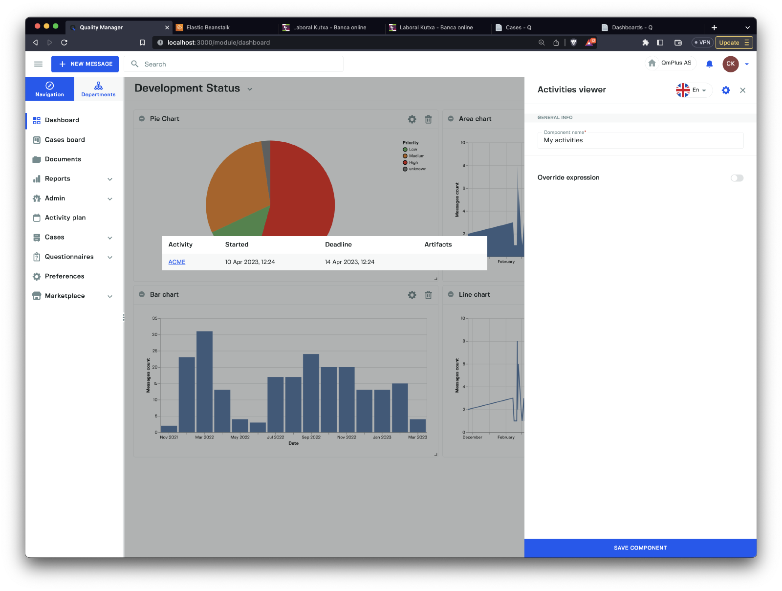 The My cases component provides you with information related to the current logged-in user. There are three tabs.