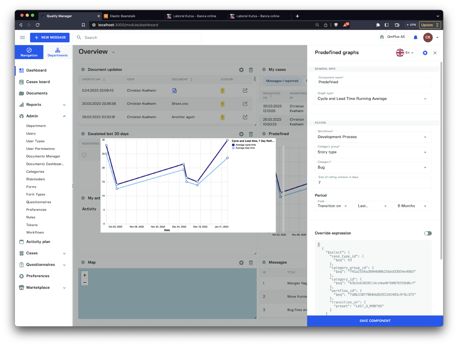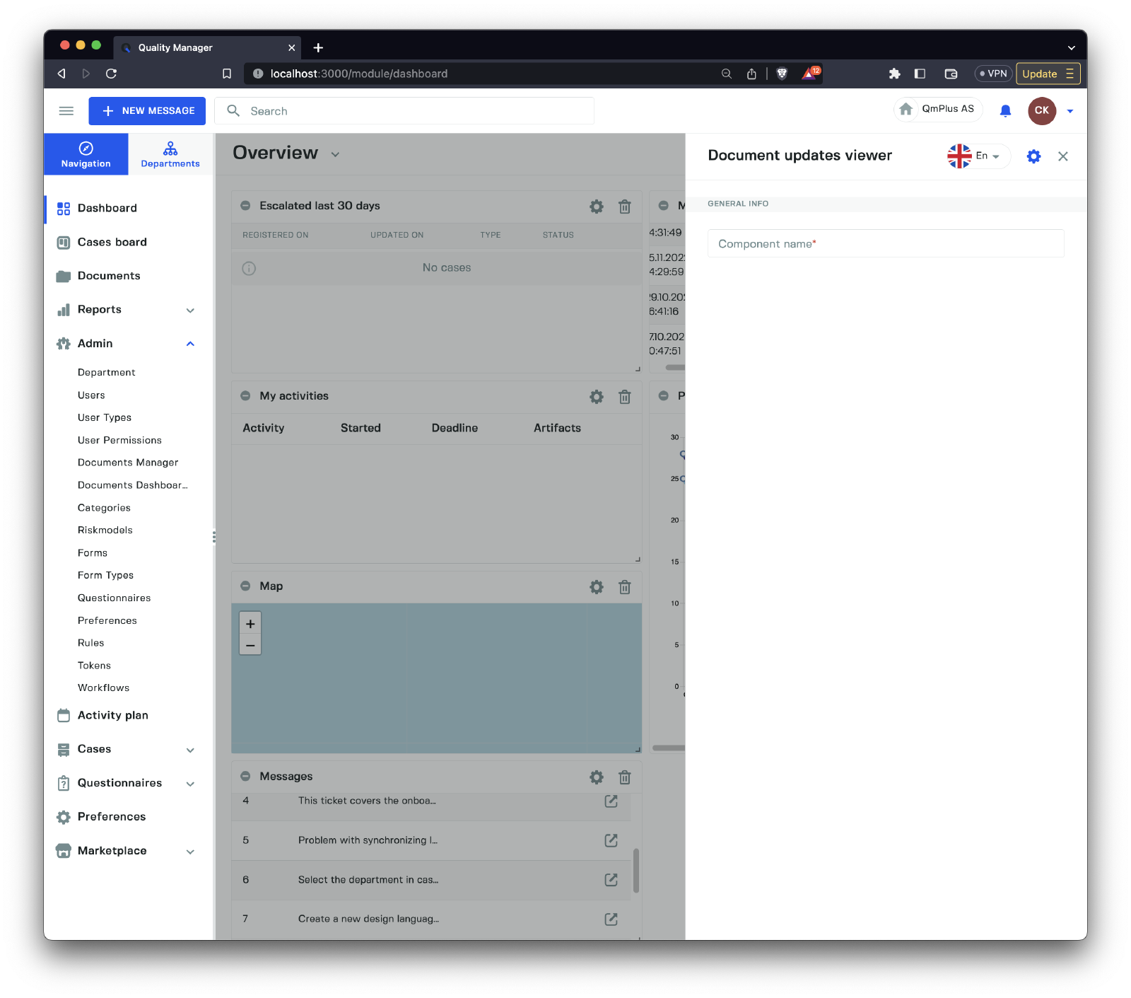 The Document updates component enables the logged-in user to see which documents have been updated within the period specified by the filters in the component settings. For example, this might show all updated documents in the last 7 days.