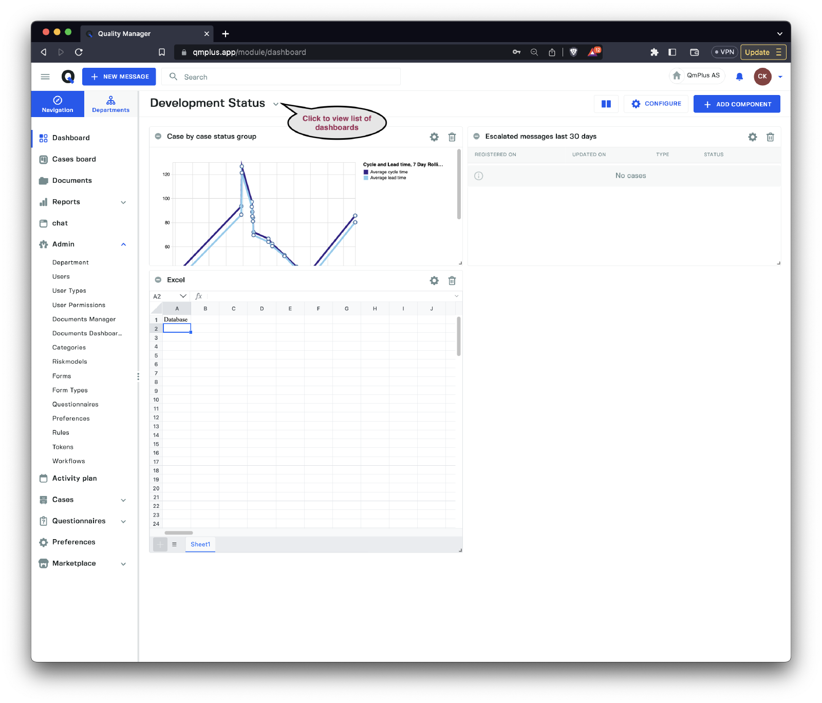 Clicking on Dashboards grants access to the list of a user’s dashboards.