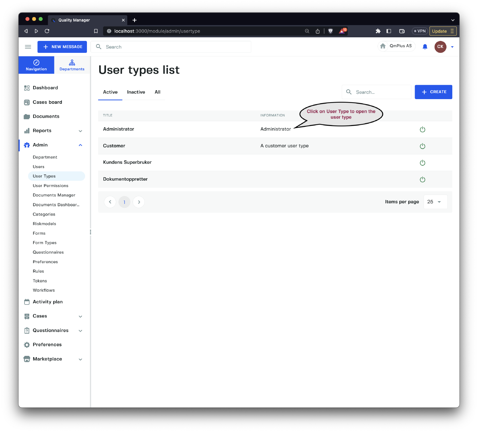 To create or modify User Type dashboards, first navigate to the User Types list. Click on one of the User Types to open the User Type, and then click on the Dashboards tab.