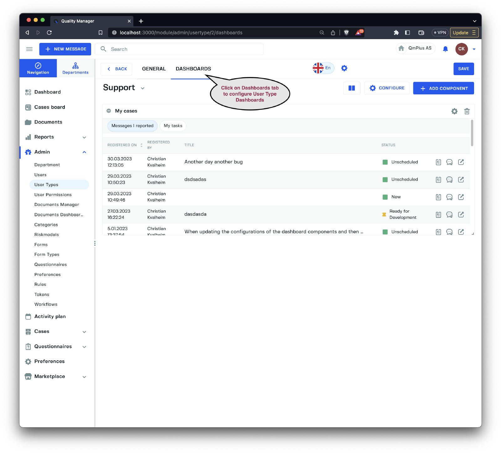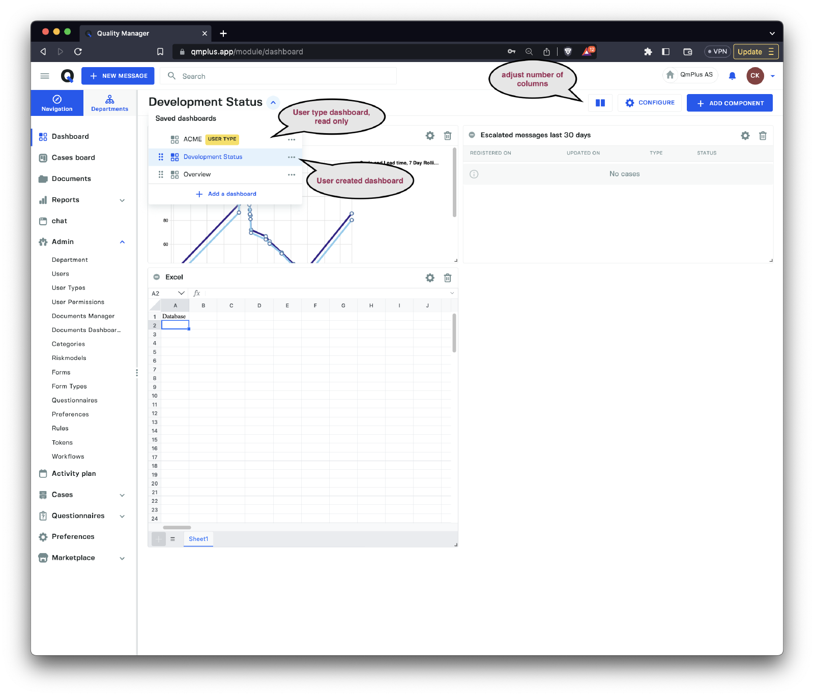 Usertype | A read-only dashboard specified for the logged-in user’s user type. Can be used to ensure uniform reporting of numbers and status. |