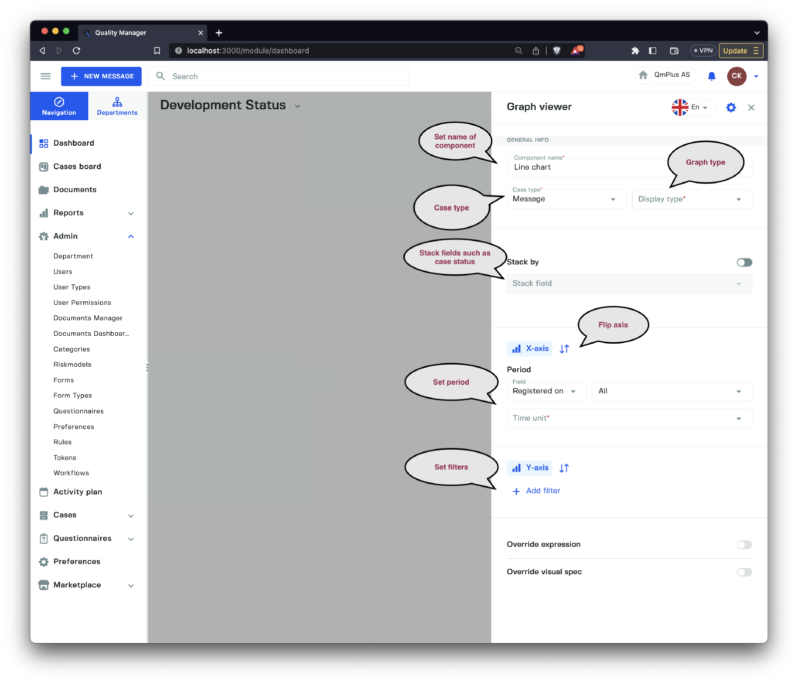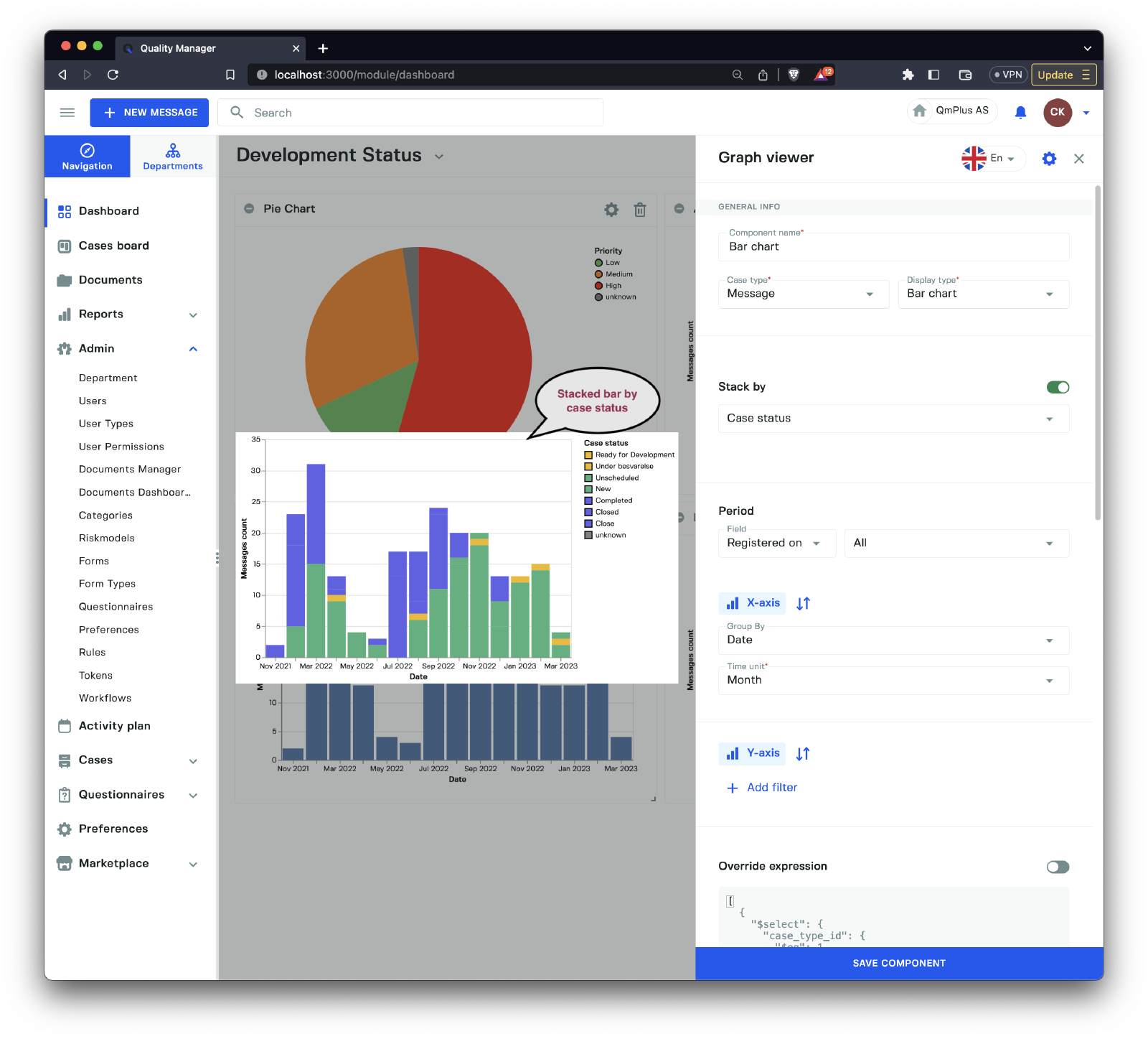 Charts allow you to create components that visualize data stored in Q. Let’s examine the available options.