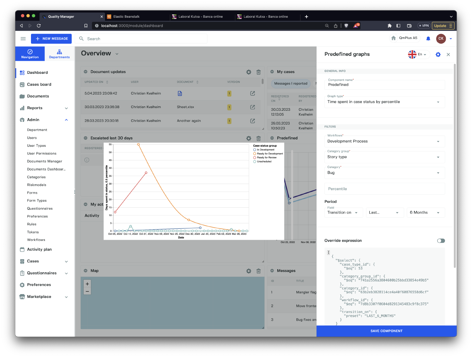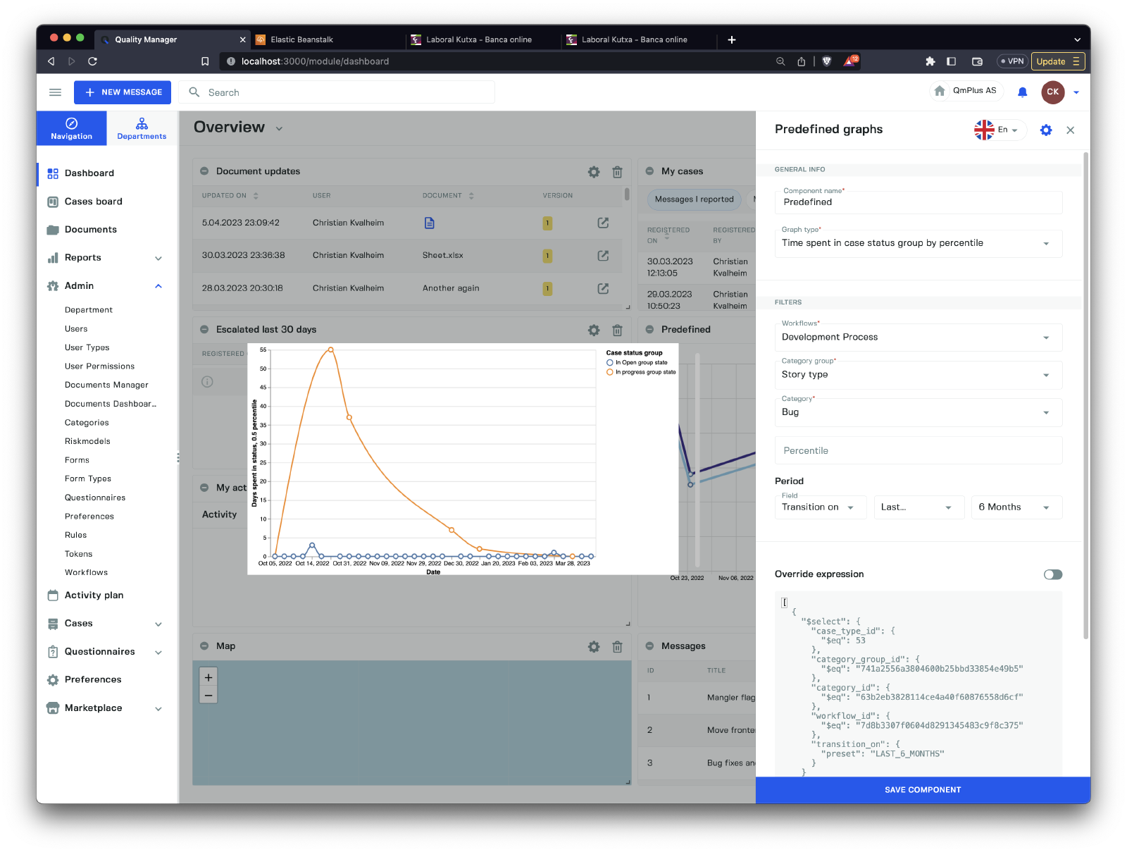 Time spent in case status by percentile | Time a case spends in each case status (setting the percentile, for definition of percentile see below). |