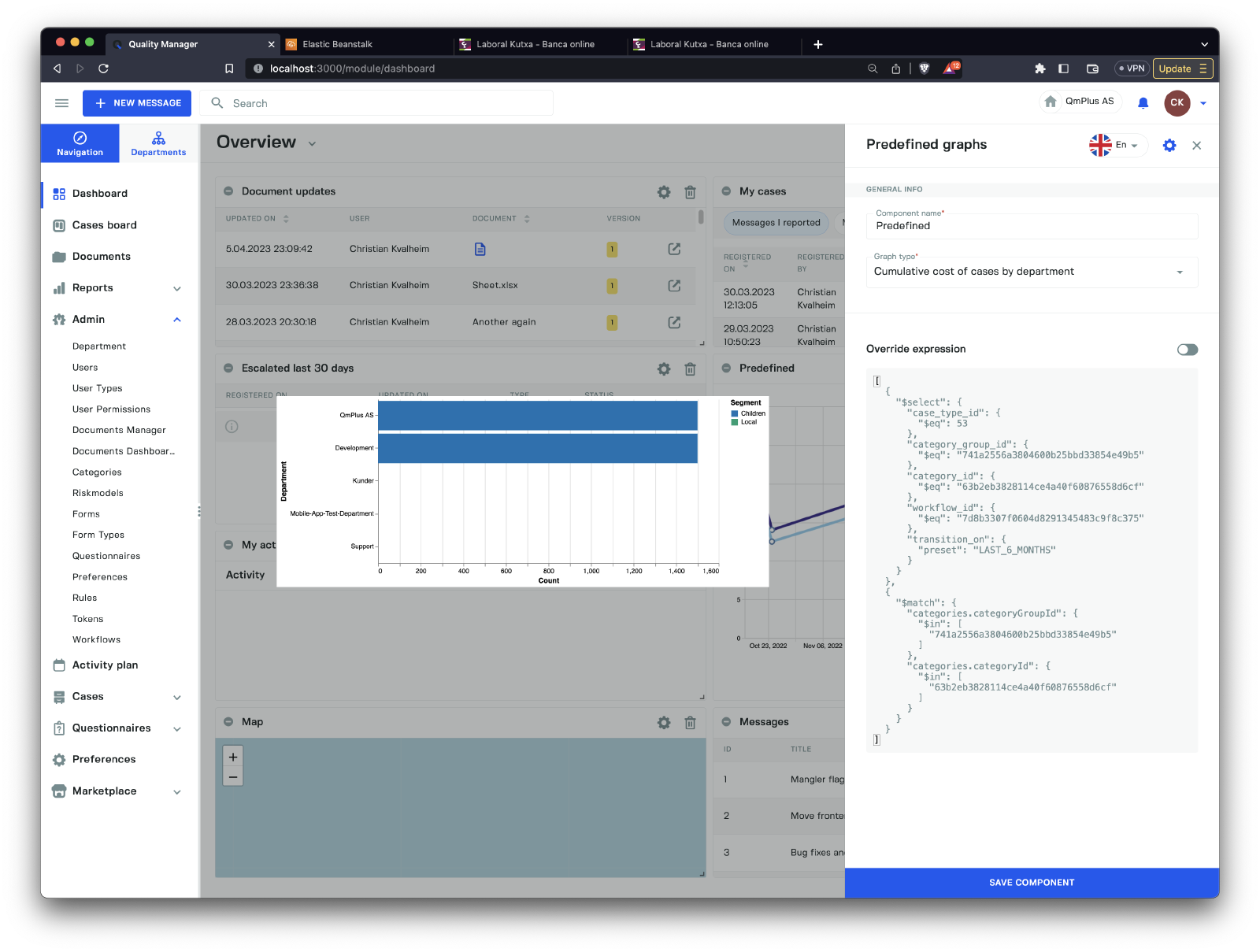 Cumulative cost of cases by department | Cumulative cost of cases per department. |