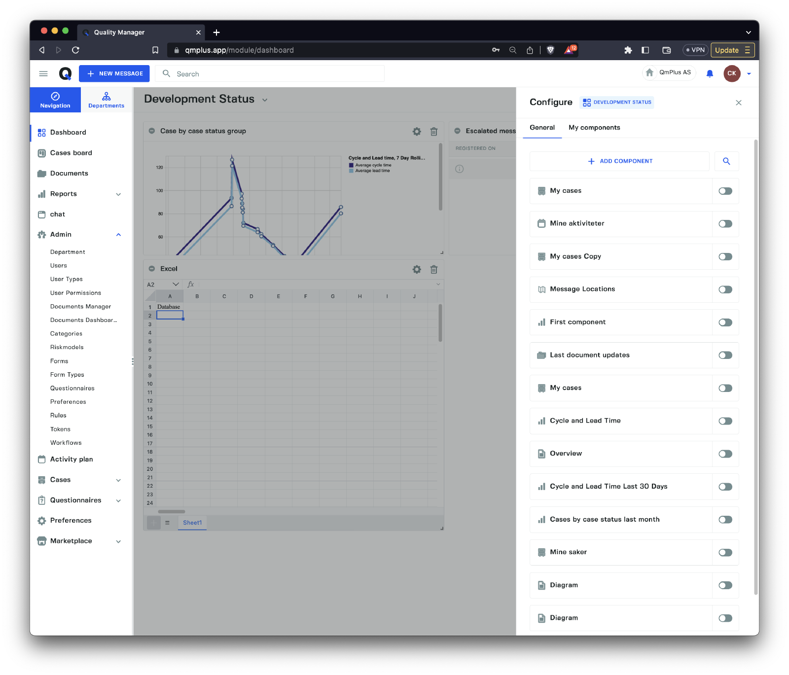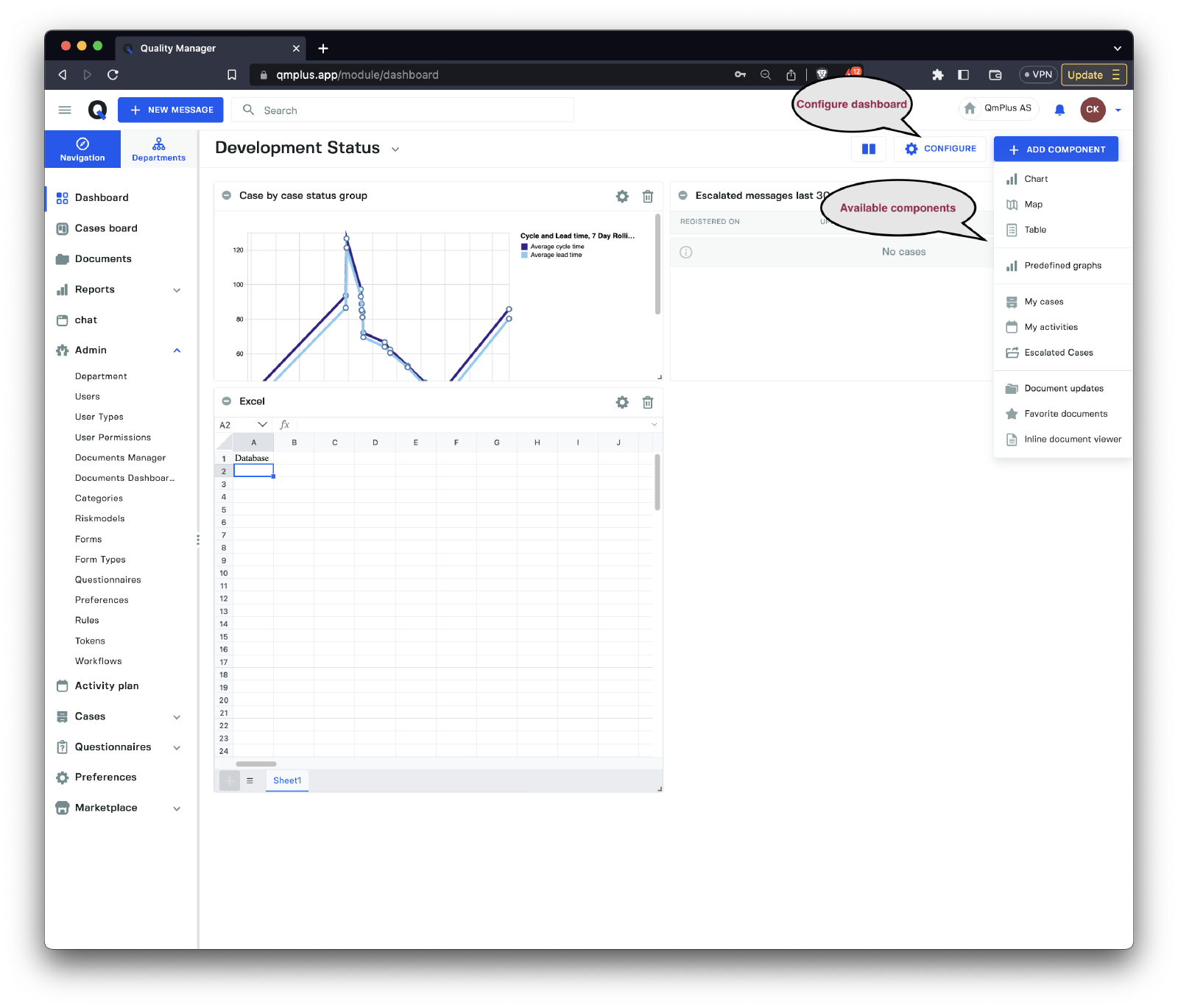 There are several components available to add to a dashboard. These can be used to construct information dashboards for end users or for yourself.