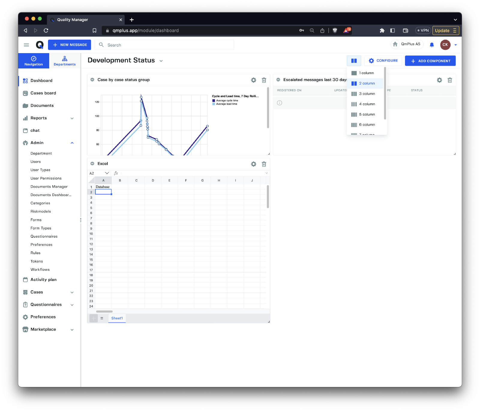 By clicking on the Columns symbol, you can adjust the number of columns used to render the dashboard, allowing for more precise control of the component layout.