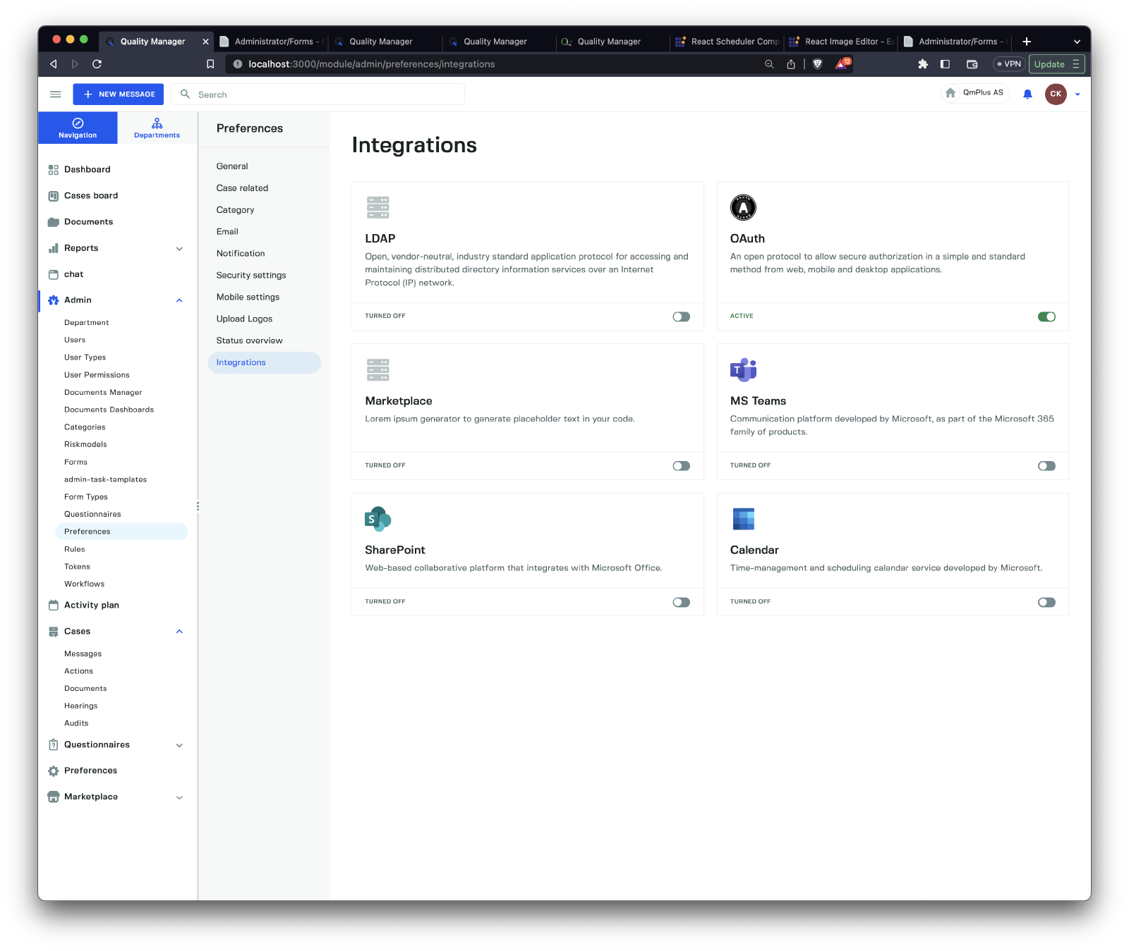 Clicking on the Administrator/Preferences gives access to the list of preferences.