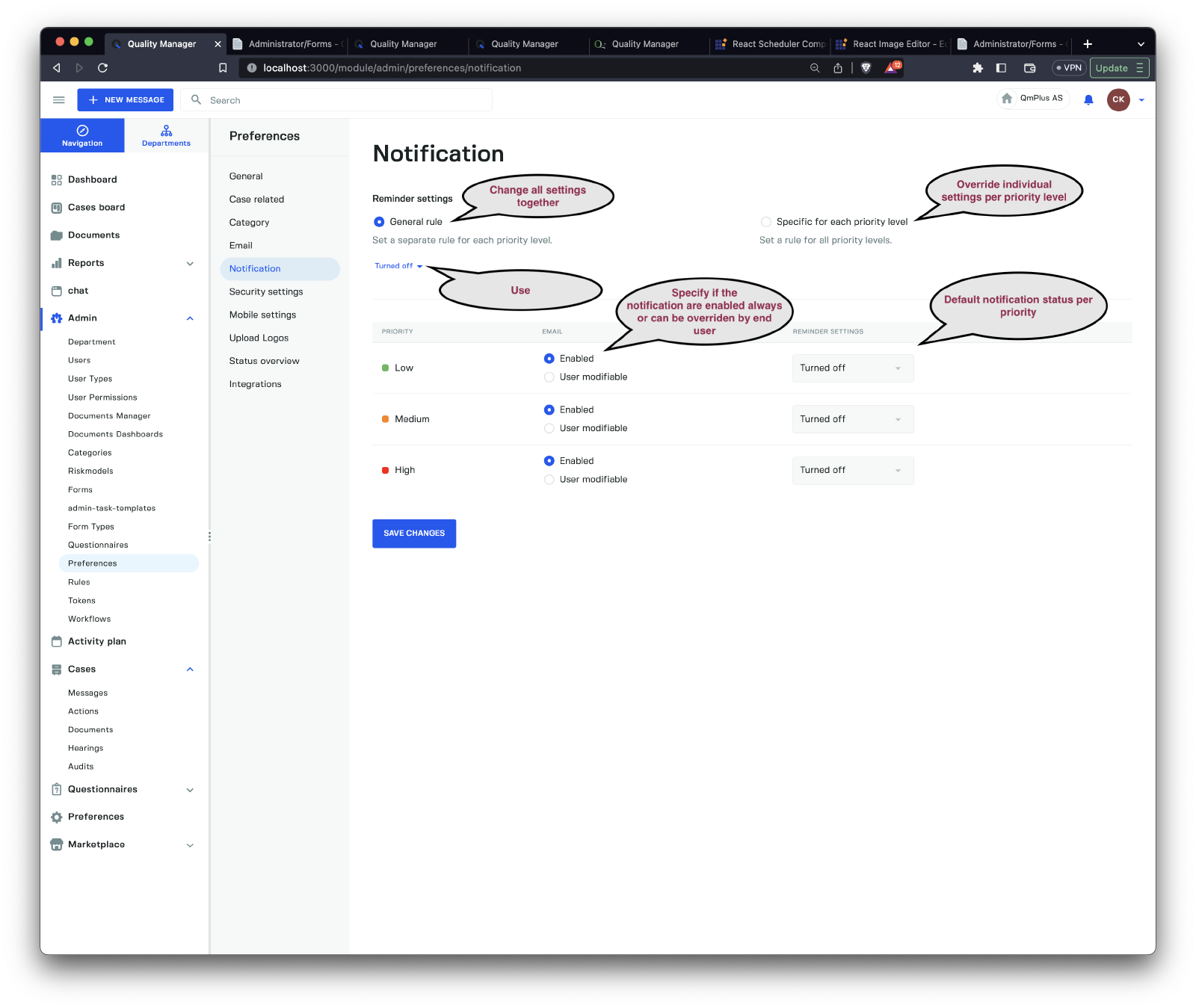 You can decide which notifications should be user-adjustable and which notifications need to be sent out. You can also set the reminder settings and when they should send the emails. For example, you might set low-priority reminders to be sent every Wednesday, but high-priority reminders must be sent every day.