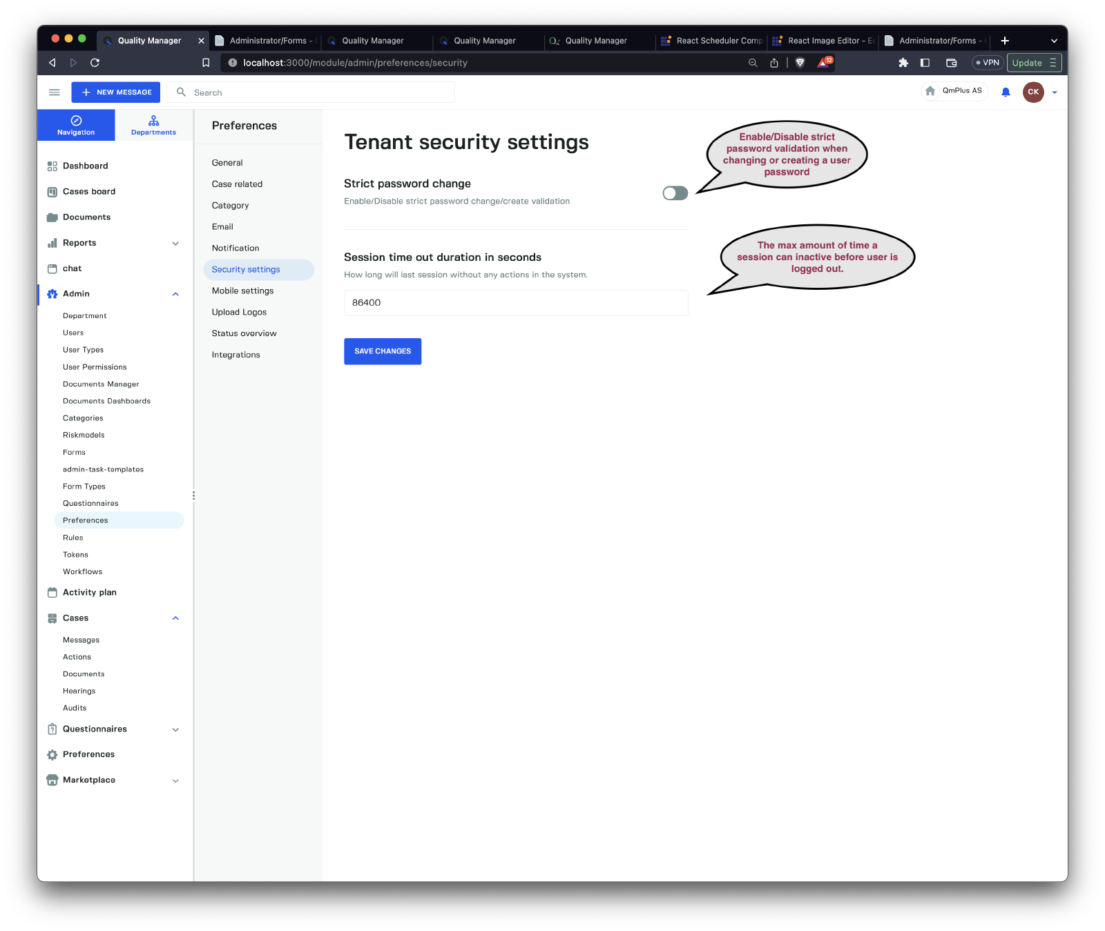 Strict password change | Enable or disable strict checking of passwords when creating a new user or updating an existing user. |