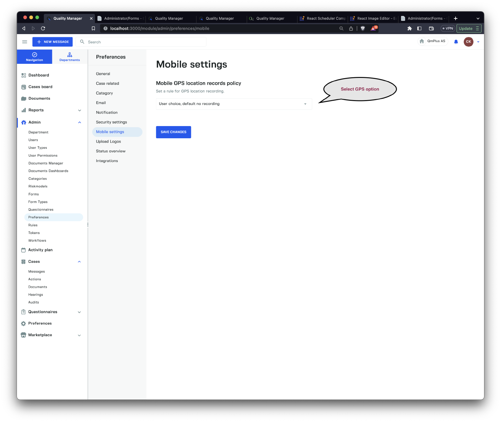 Mobile GPS location recording policy | Allows you to specify if GPS location recording should be available or not. For options details, look below. |