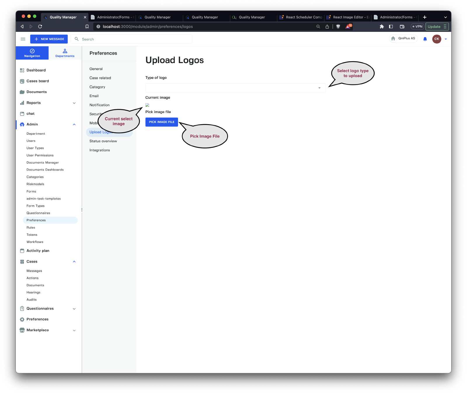The upload logos settings allow you to upload custom logos to be shown in different places.