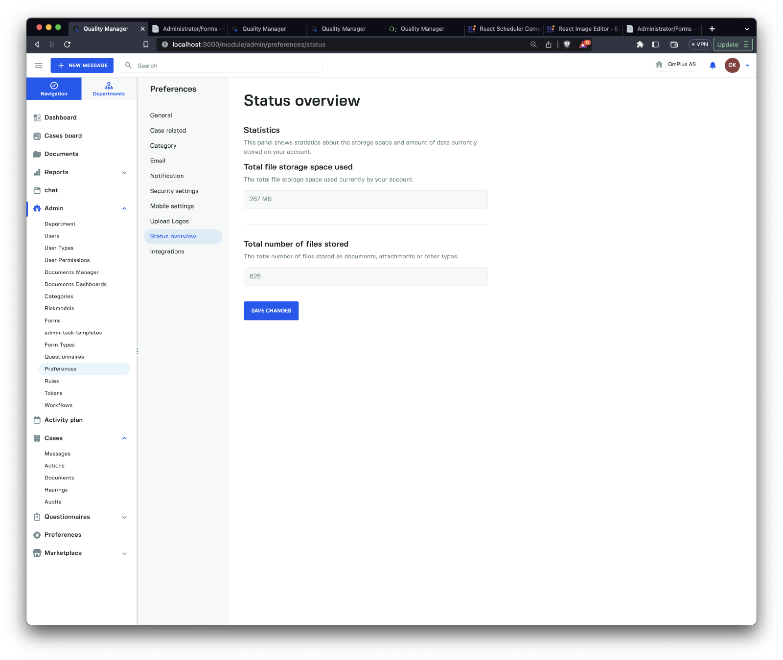 Total file storage space used | The total storage space used by uploaded files. This includes documents as well as attachments to messages and cases. |