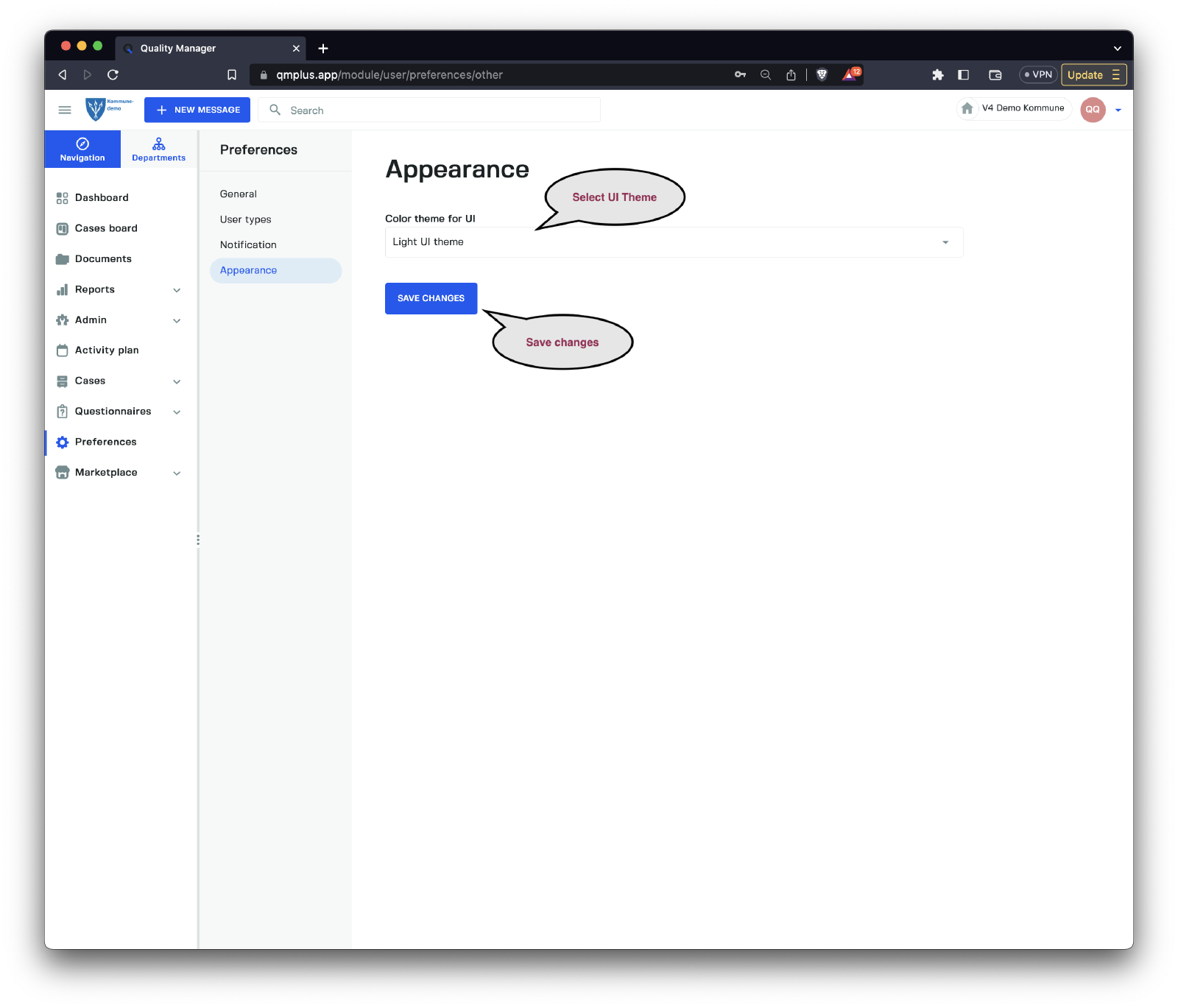 Click the Save Changes button to save the changes to the UI theme.