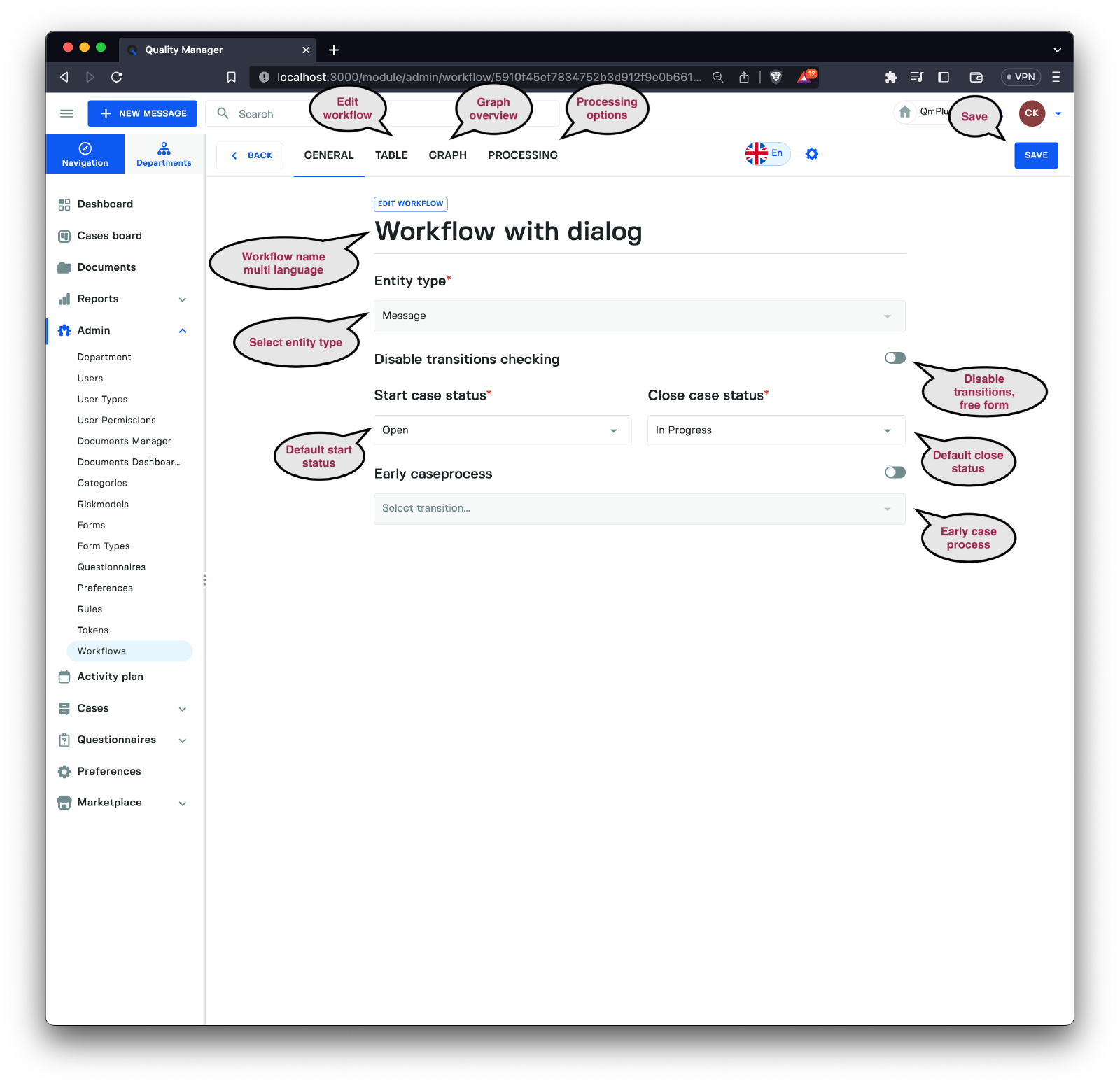Processing | Default processing settings for the workflow, such as automatic deadlines, etc. |