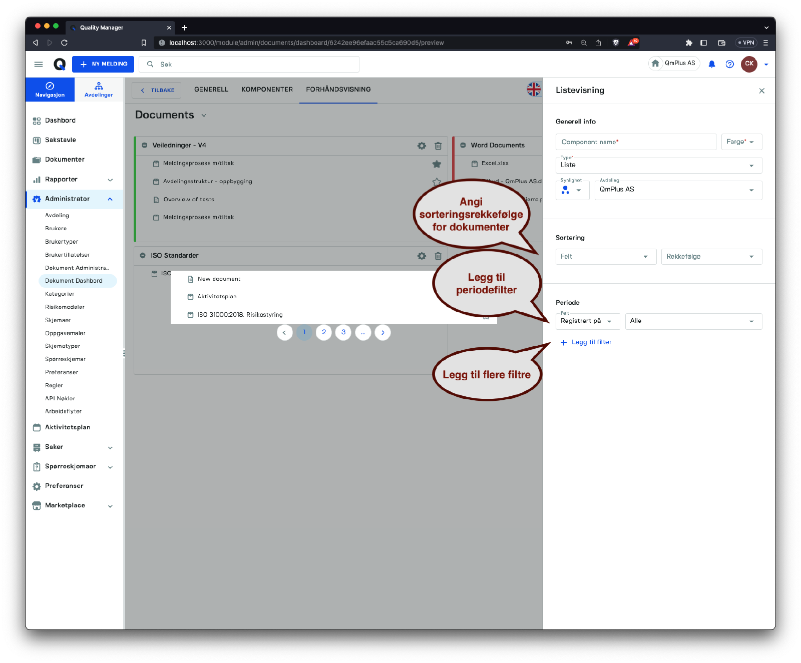 Filtre | Legg til filtre for å begrense dokumentene som vises i listen. |