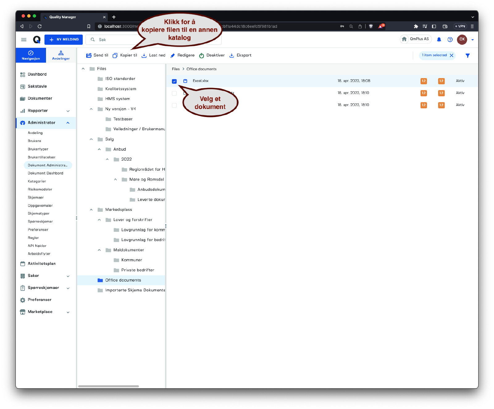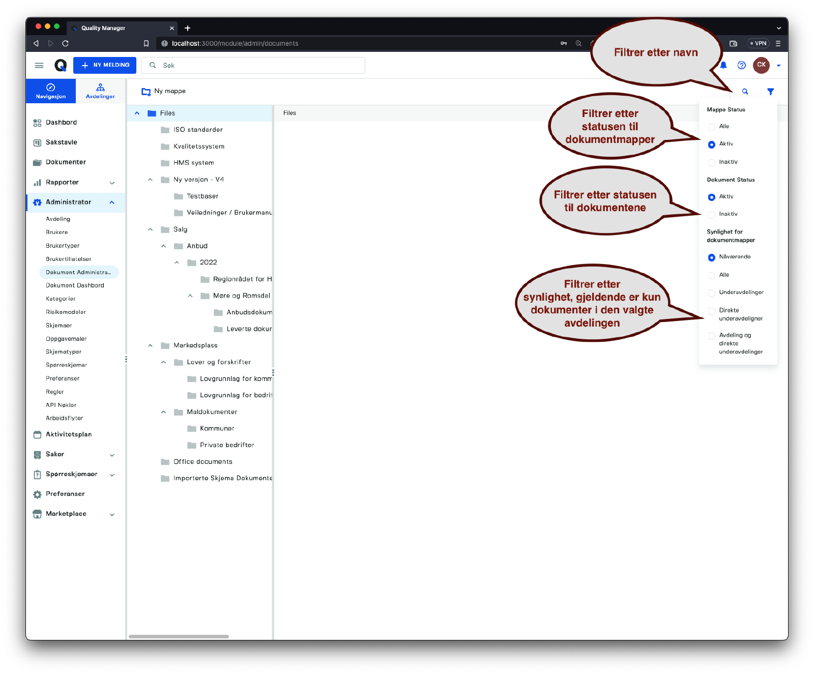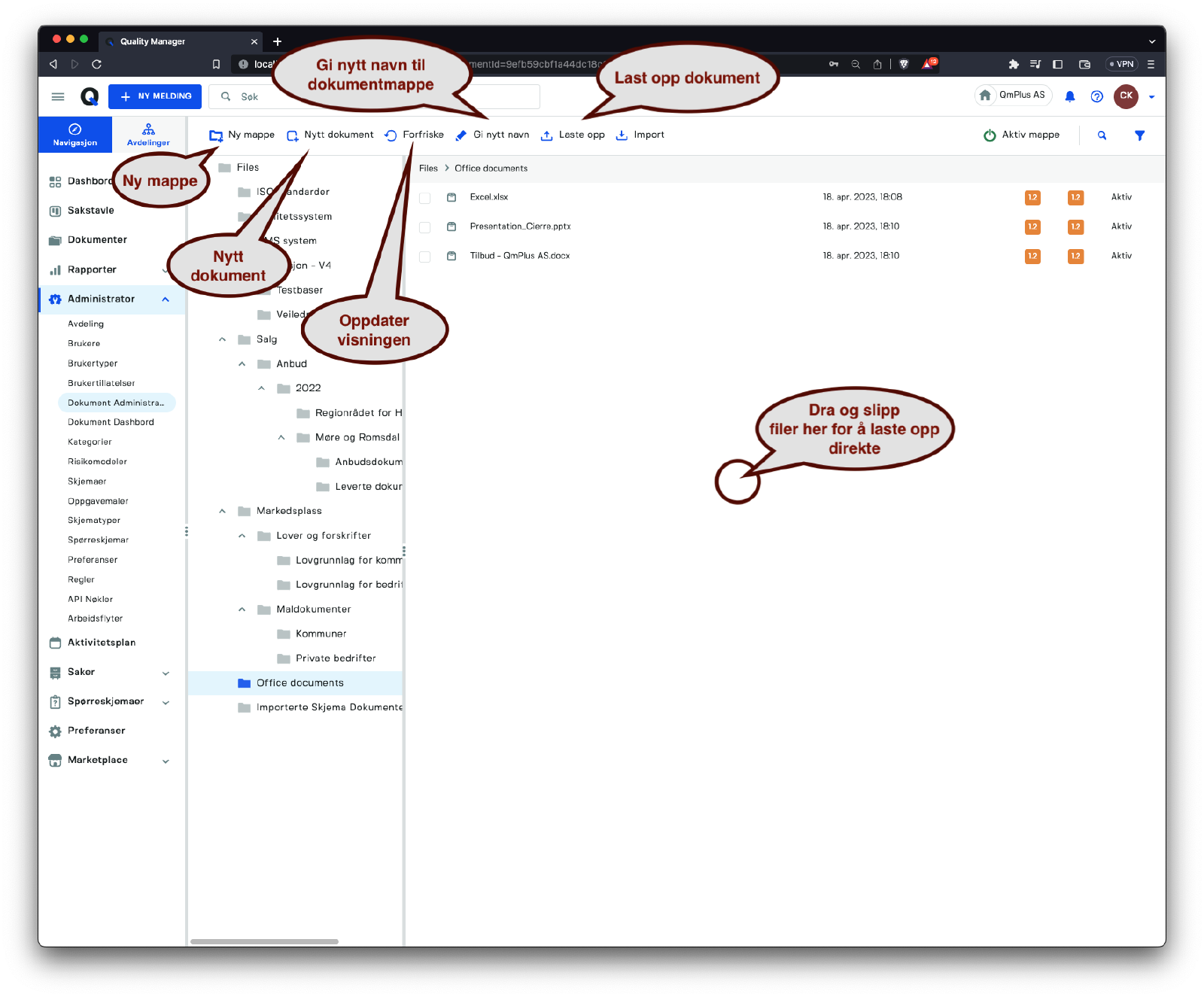 Ved å klikke på Administrator/Dokument Administrator, får du tilgang til dokumentbehandleren.