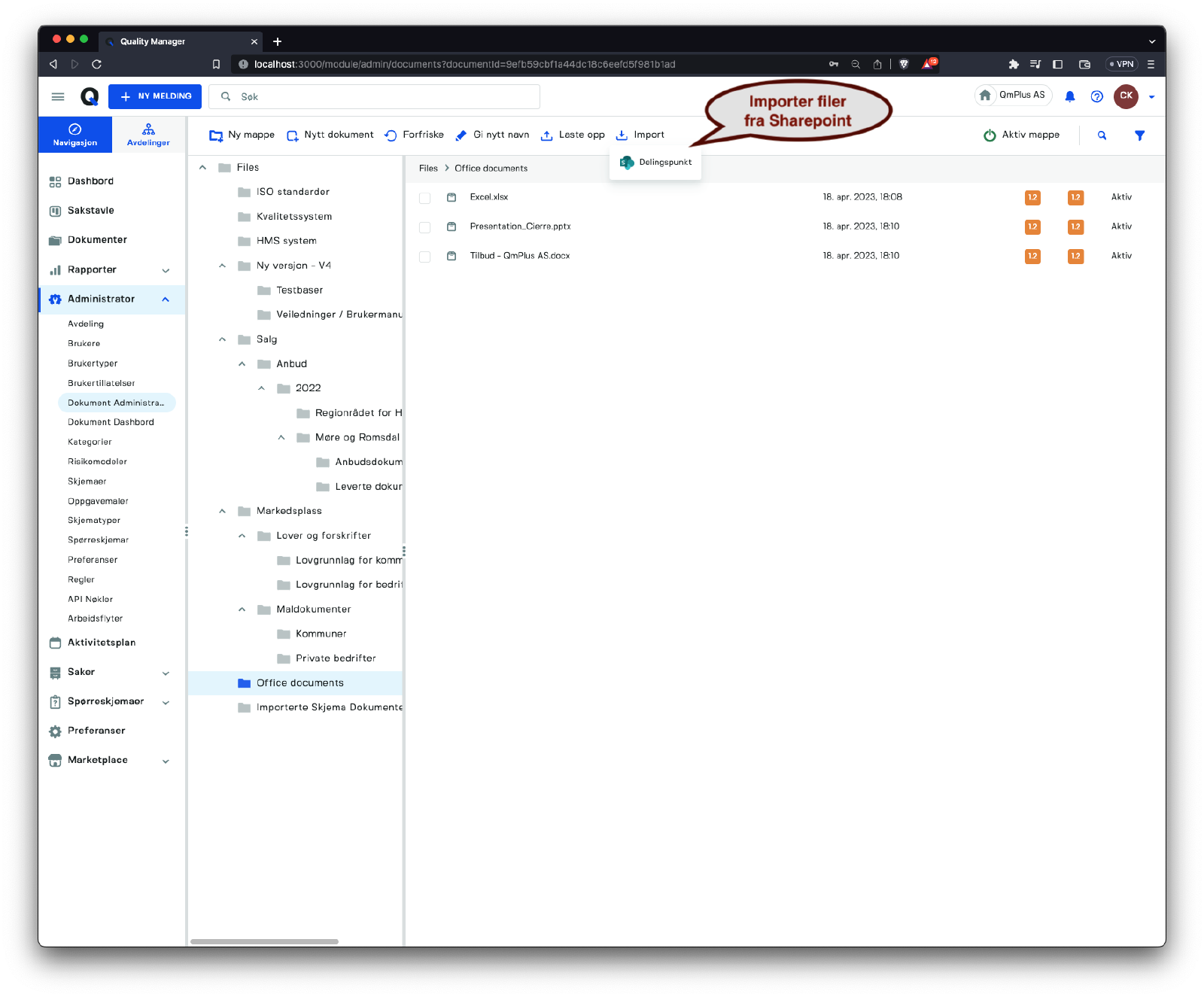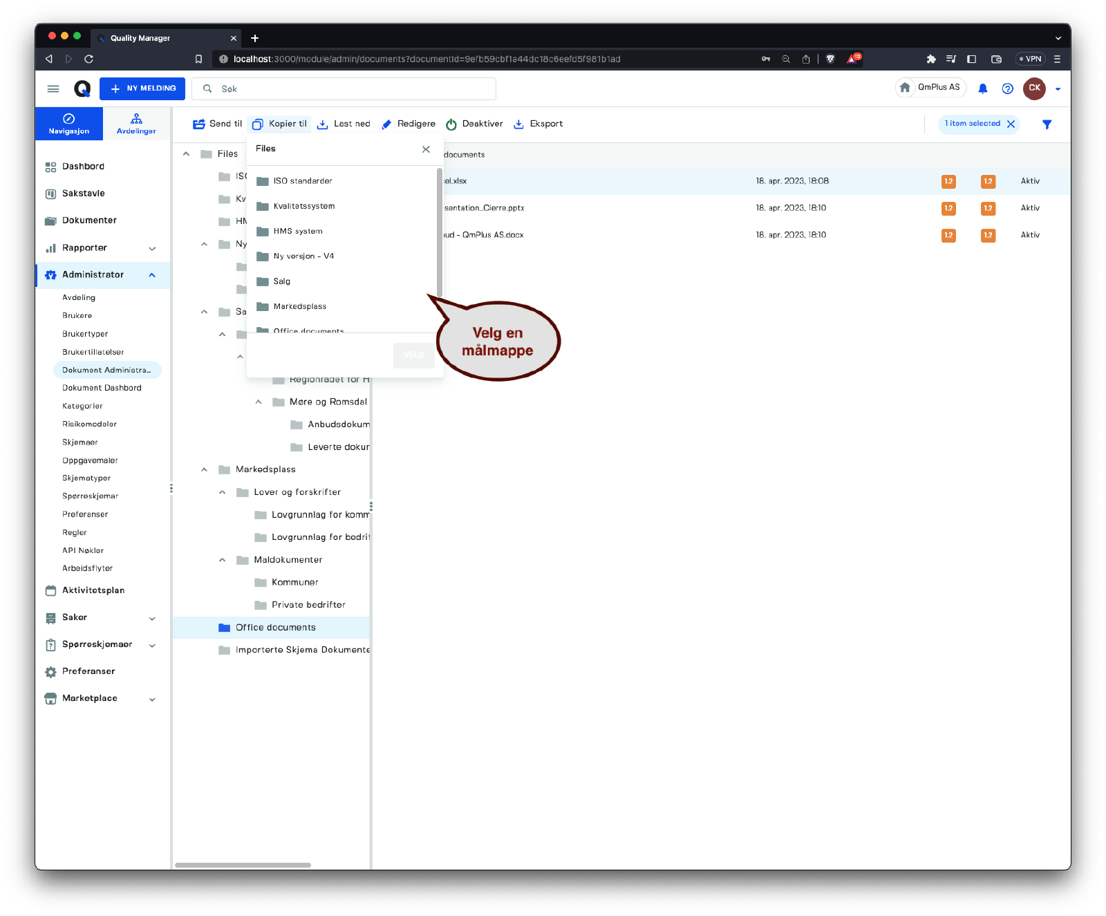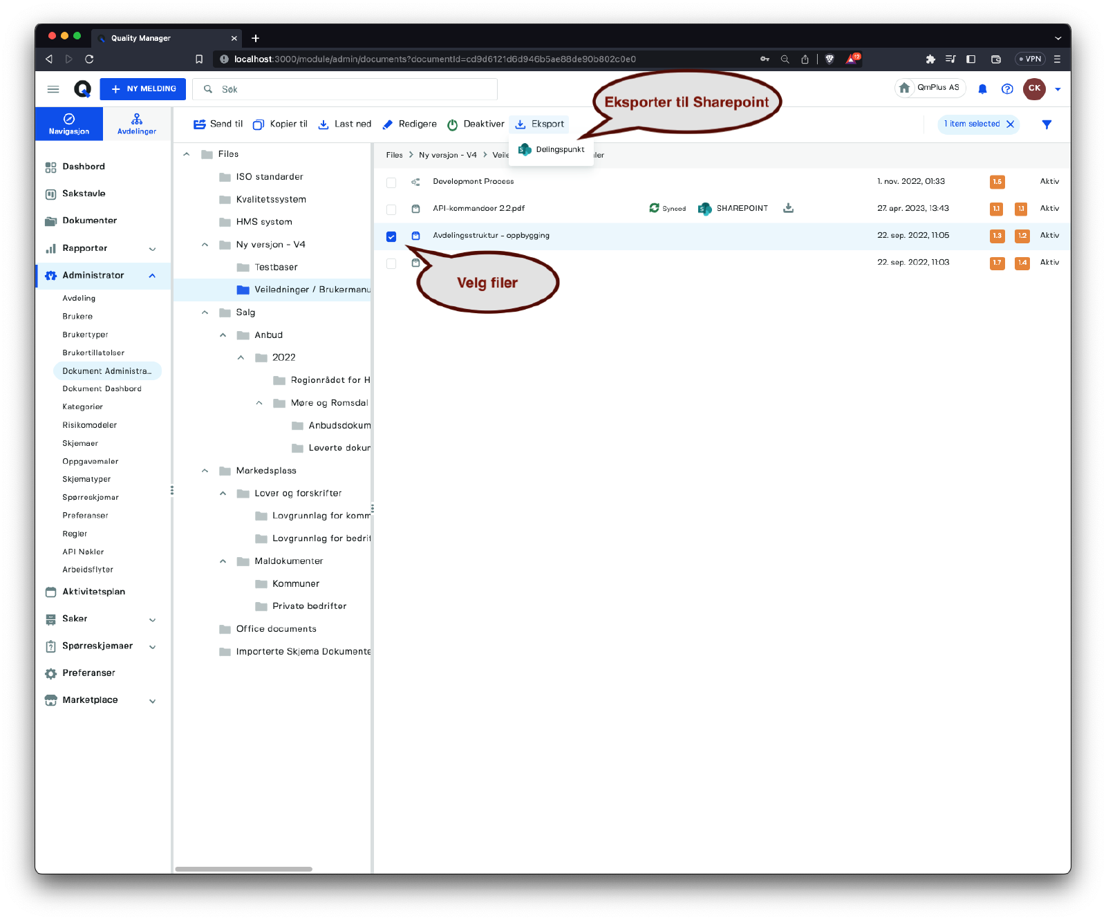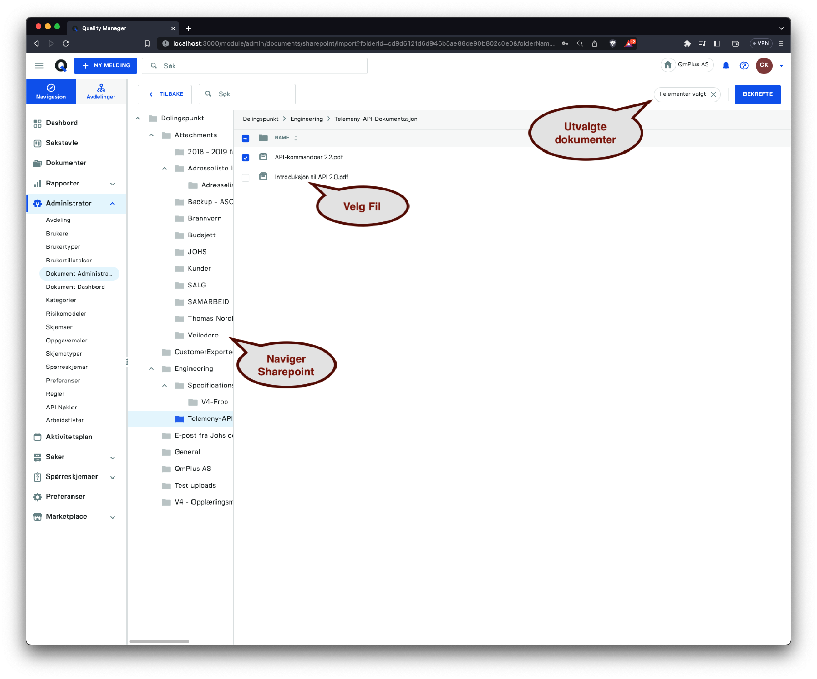Ved å klikke på Administrator/Dokument Administrator, får du tilgang til dokumentbehandleren.