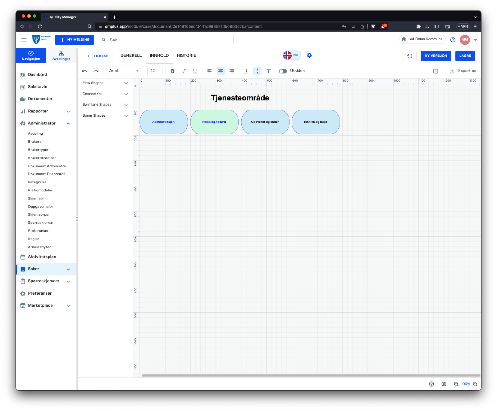 Prosesskartverktøyet lar deg lage enkle prosesskart som du kan lagre som dokumenter, bygge inn i dashbord eller lenke til andre dokumenter, og lage klikkbare kart.
