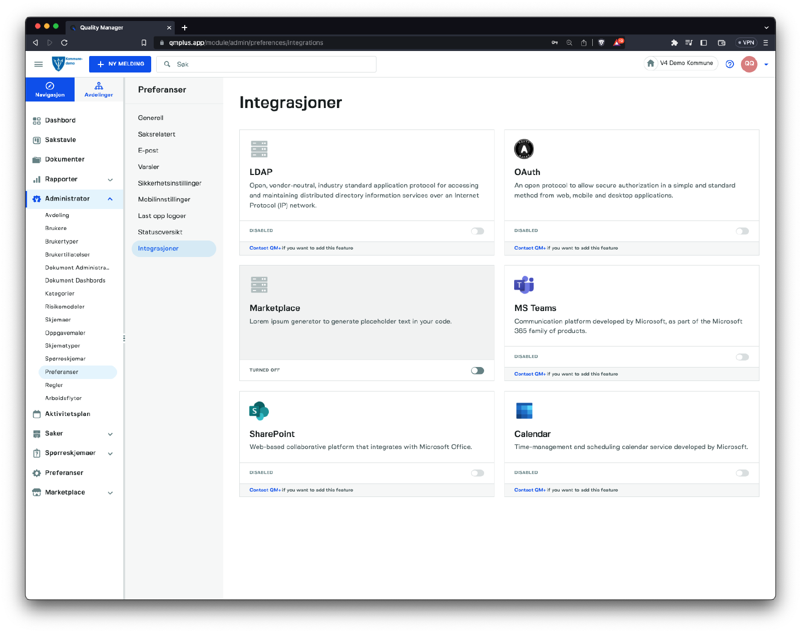 MS Teams | JA | Integrer med Microsoft Teams. Krever OAuth-integrasjon mot Azure med riktig oppsett av tillatelser. |