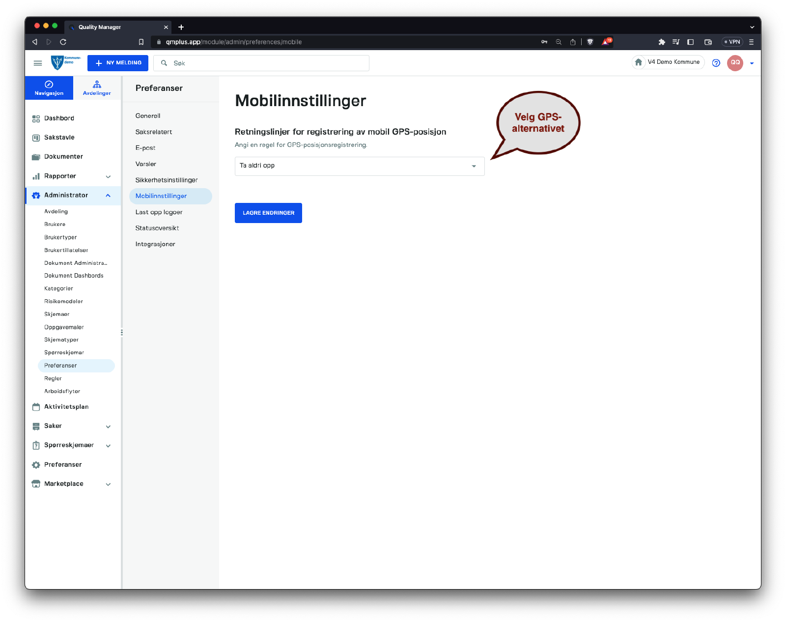 Mobile GPS-lokasjonsopptakspolicy alternativer