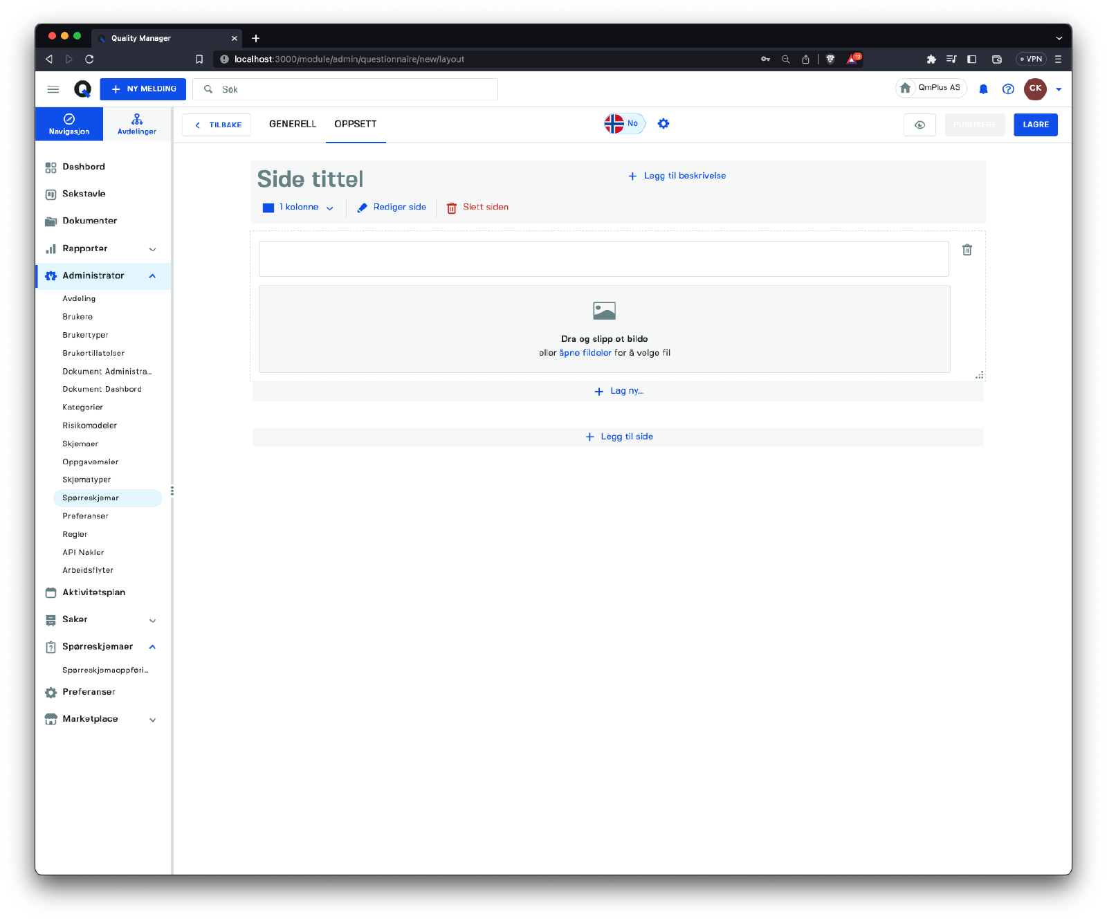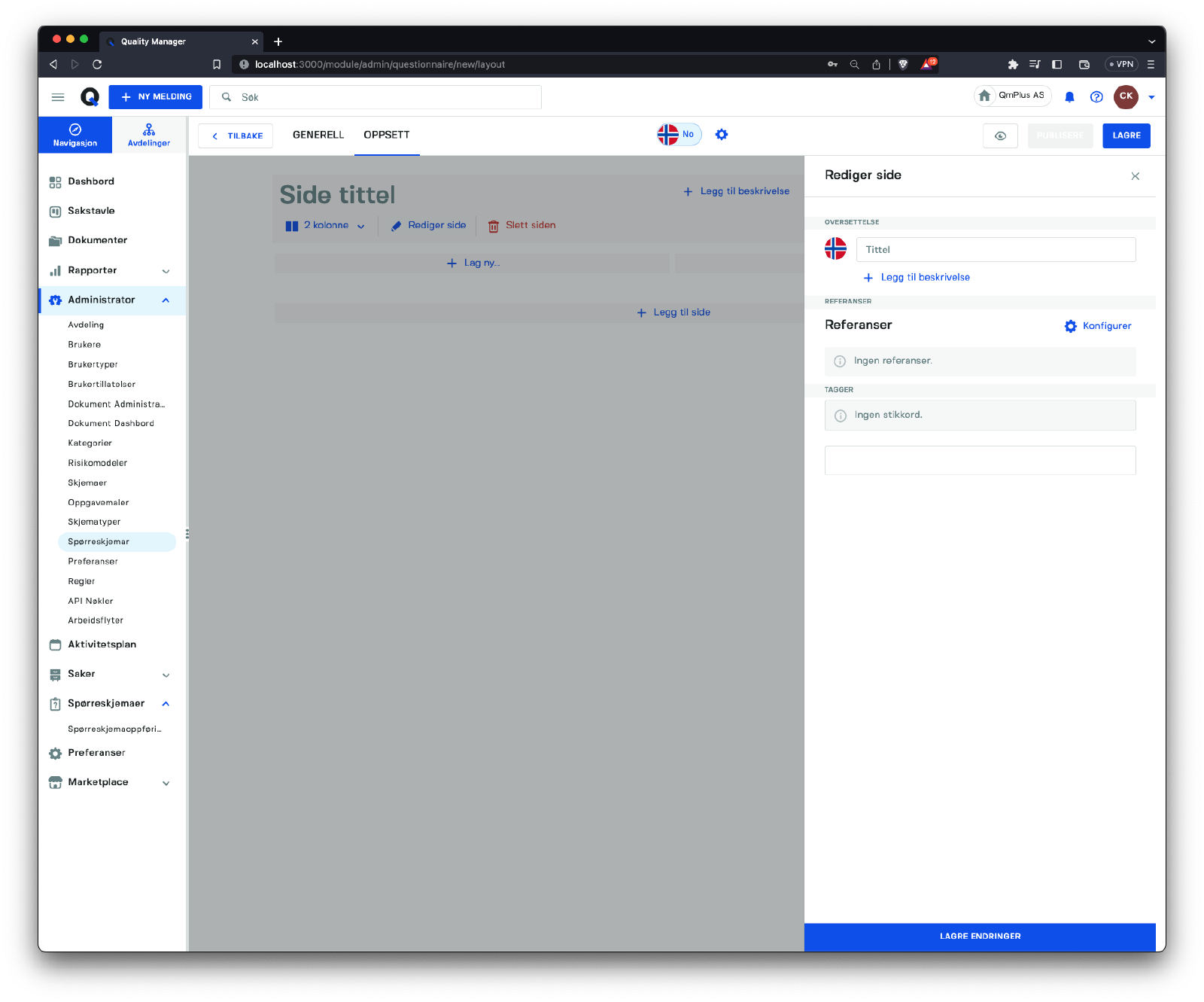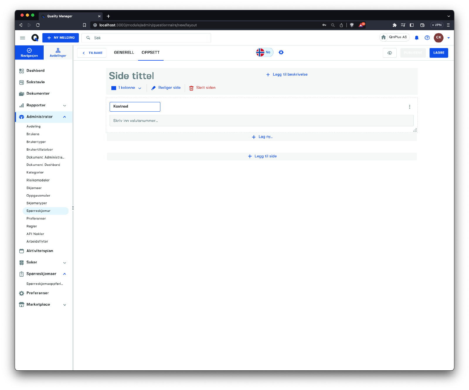 Denne seksjonen fokuserer på å administrere spørreskjemaer i systemet.