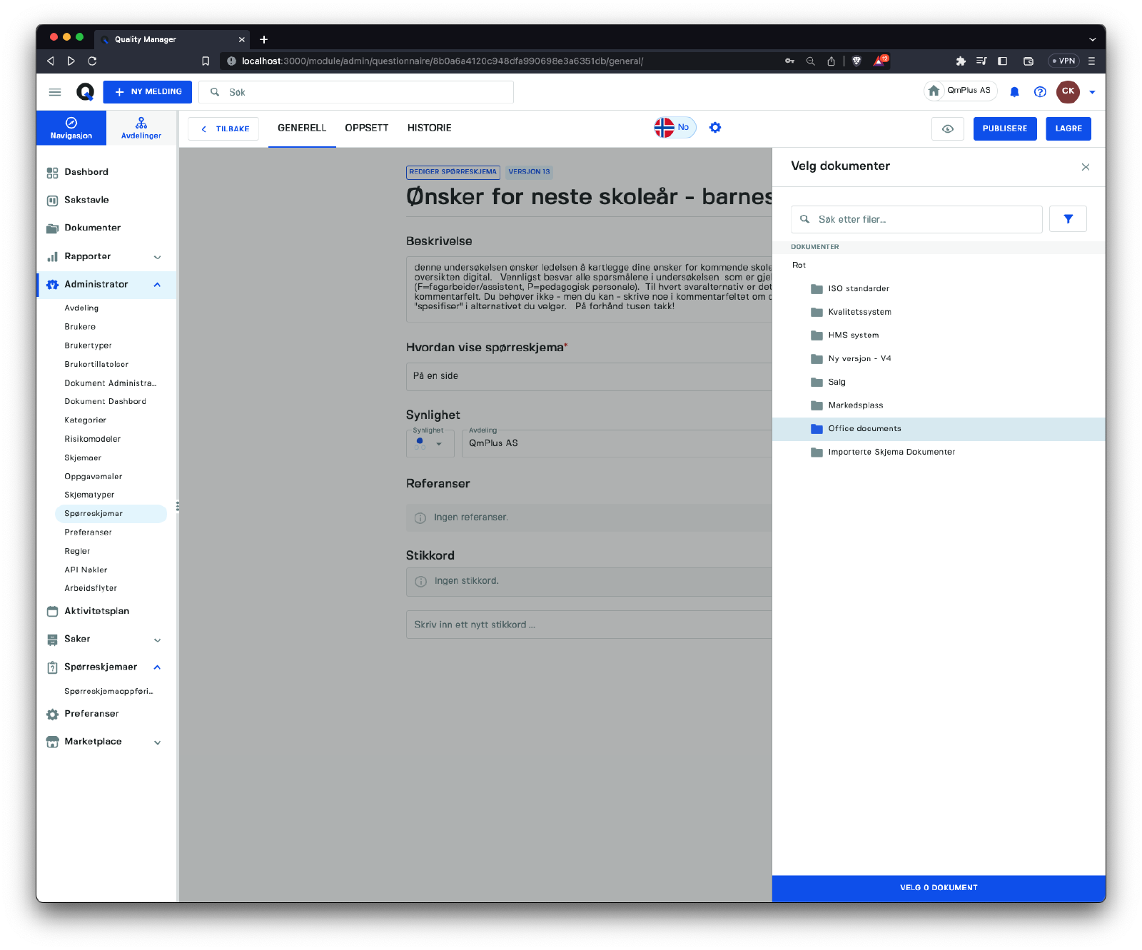 Referanser kan legges til dokumenter lagret i Q for å gi kontekst til et spørreskjema eller relevante dokumenter.