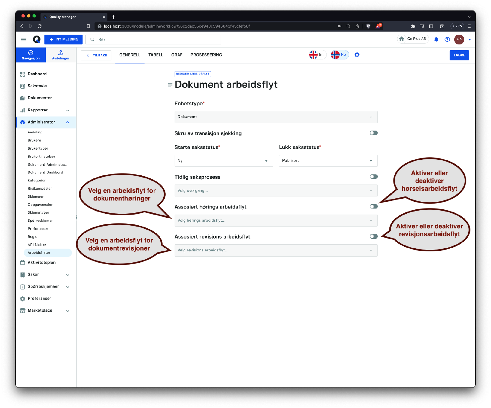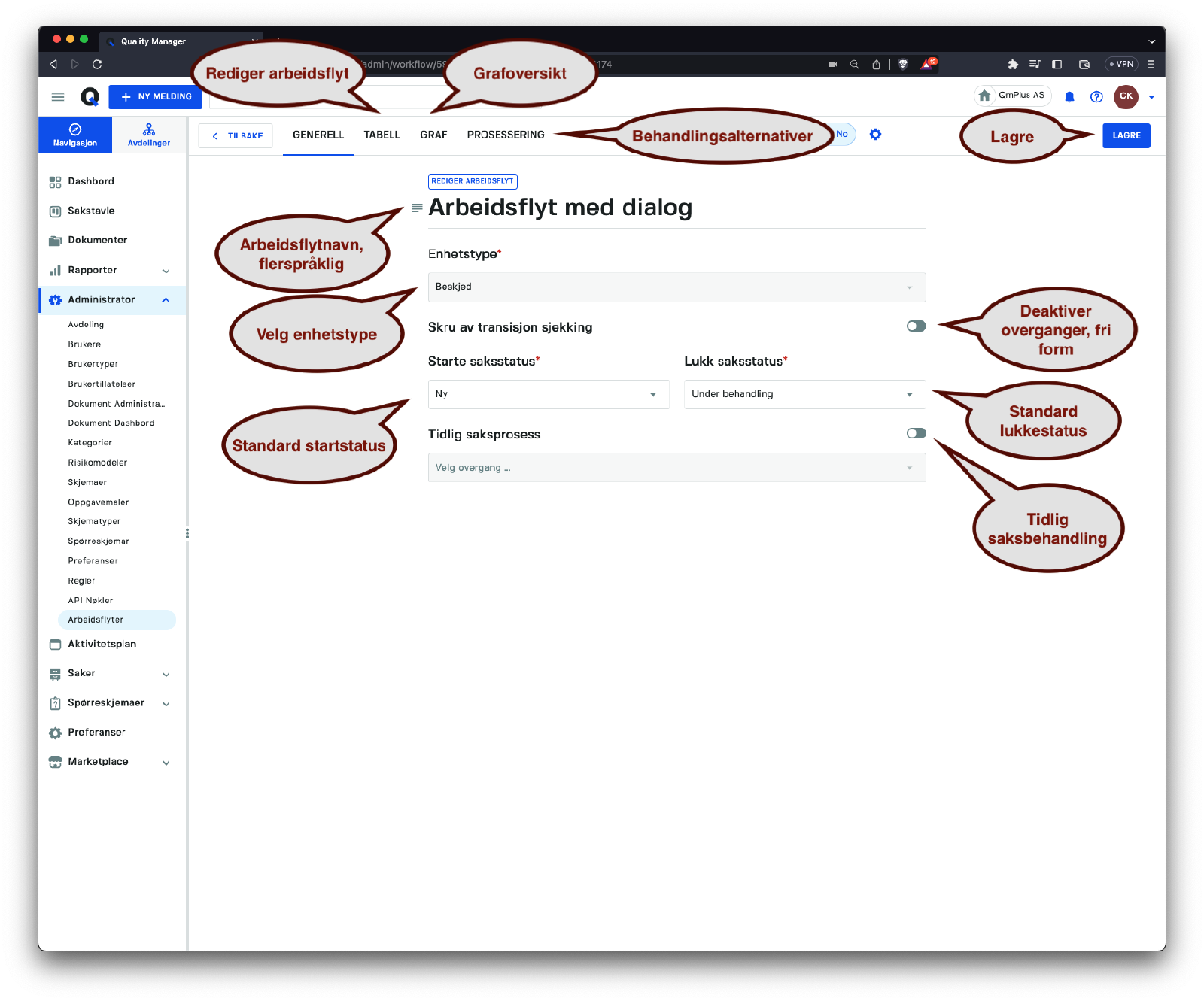Denne delen handler om å administrere arbeidsflyter i systemet.