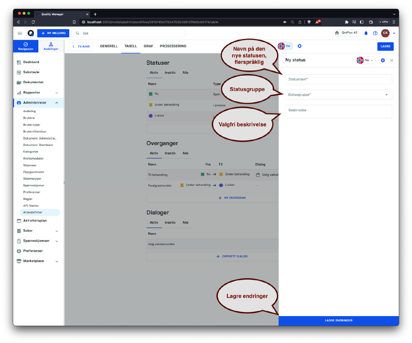 Beskrivelse | En valgfri beskrivelse for sakstatusen. |