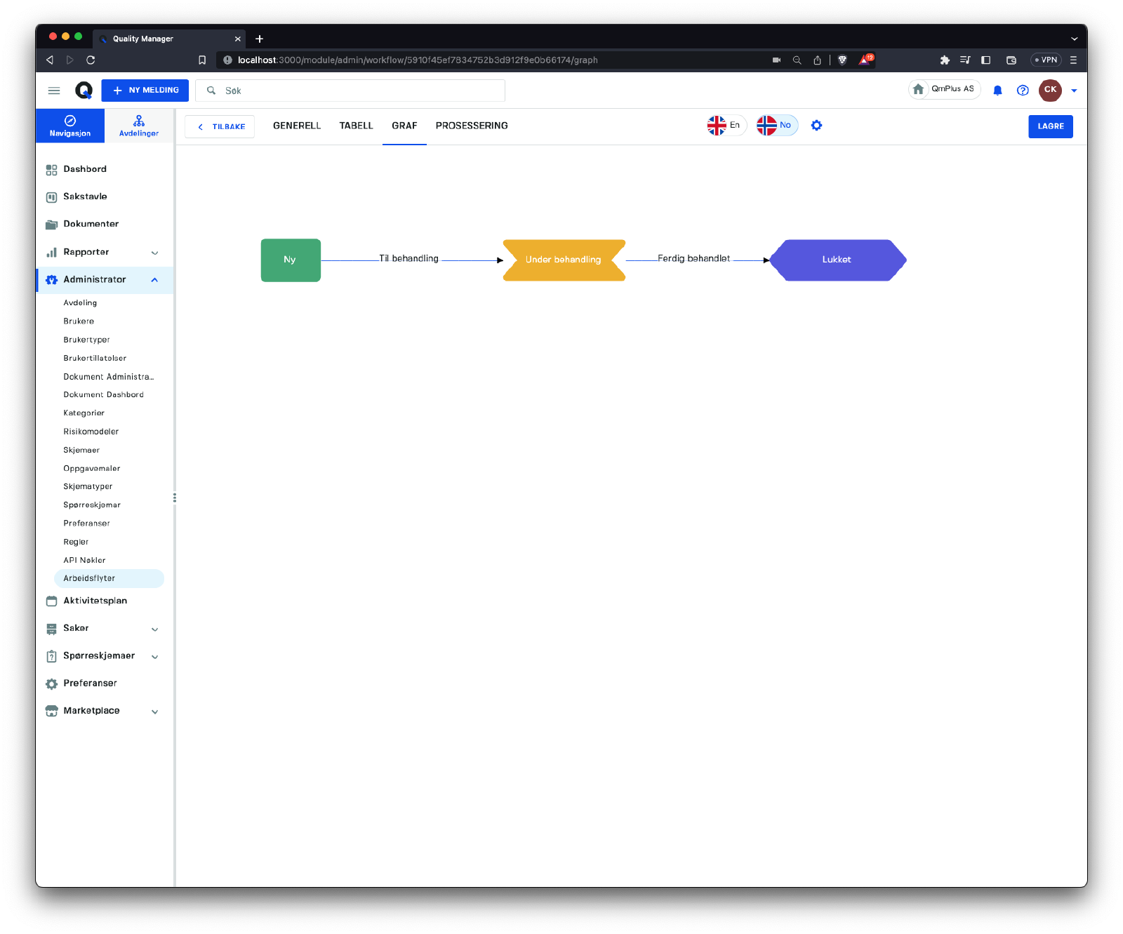 Graf | En grafisk fremstilling av arbeidsflyten. |